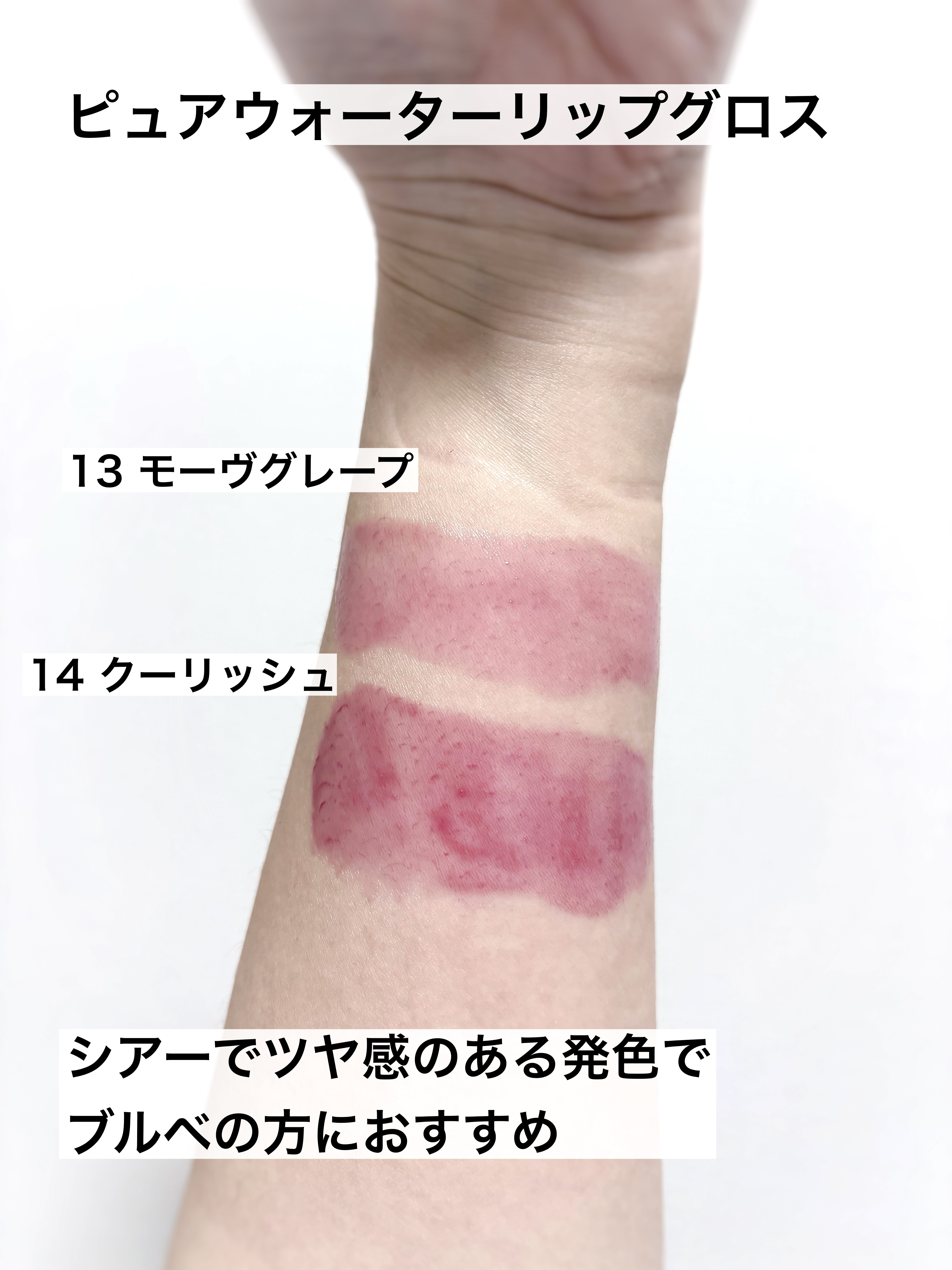 - <01 コーラルジュース> ハイドロジェネイテッドポリイソブテン、ジアイソステアリルマレート、カプリーリル/カプリルトリグリセリド、ポリグリセリル-2トライイソステアレート、ラズベリーシードオイル、トコフェリルアセテート、プロパンジオールエステル、ヒマワリ種子油、オリーブ果実油、ホホバ種子油、ブドウ種子油、蓮の花エキス、ヤグルマギク花エキス、セイヨウニワトコ花エキス、マグワ根皮エキス、デキストリンパルミテート、シリカジメチルシリレート、ジメチルシリル化シリカ、ポリグリセリル-2トリイソステアレート、精製水、グリセリン、スクワラン、ジパルミトイルヒドロキシプロリン、テトラヒドロジフェルロイルメタン、ポタシウムベンゾエート、香料、リナロール、酸化チタン (CI 77891)、黄色酸化鉄 (CI 19140)、赤色酸化鉄 (CI 77492)、赤色202号 (CI 15850)、赤色104号の(1) (CI 45410)、黄色5号 (CI 15985) <02 ベアポメロ> ハイドロジェネイテッドポリイソブテン、ジアイソステアリルマレート、カプリーリル/カプリルトリグリセリド、ポリグリセリル-2トライイソステアレート、ラズベリーシードオイル、トコフェリルアセテート、プロパンジオールエステル、ヒマワリ種子油、オリーブ果実油、ホホバ種子油、ブドウ種子油、蓮の花エキス、ヤグルマギク花エキス、セイヨウニワトコ花エキス、マグワ根皮エキス、デキストリンパルミテート、シリカジメチルシリレート、ジメチルシリル化シリカ、ポリグリセリル-2トリイソステアレート、精製水、グリセリン、スクワラン、ジパルミトイルヒドロキシプロリン、テトラヒドロジフェルロイルメタン、ポタシウムベンゾエート、香料、リナロール、酸化チタン (CI 77891)、黄色酸化鉄 (CI 19140)、赤色酸化鉄 (CI 77492)、赤色202号 (CI 15850)、赤色104号の(1) (CI 45410)、黄色5号 (CI 15985) <03 ハニーピーチ> ハイドロジェネイテッドポリイソブテン、ジアイソステアリルマレート、カプリーリル/カプリルトリグリセリド、ポリグリセリル-2トライイソステアレート、ラズベリーシードオイル、トコフェリルアセテート、プロパンジオールエステル、ヒマワリ種子油、オリーブ果実油、ホホバ種子油、ブドウ種子油、蓮の花エキス、ヤグルマギク花エキス、セイヨウニワトコ花エキス、マグワ根皮エキス、デキストリンパルミテート、シリカジメチルシリレート、ジメチルシリル化シリカ、ポリグリセリル-2トリイソステアレート、精製水、グリセリン、スクワラン、ジパルミトイルヒドロキシプロリン、テトラヒドロジフェルロイルメタン、ポタシウムベンゾエート、香料、リナロール、酸化チタン (CI 77891)、黄色酸化鉄 (CI 19140)、赤色酸化鉄 (CI 77492)、赤色202号 (CI 15850)、赤色104号の(1) (CI 45410)、黄色5号 (CI 15985) <04 アップルバイト> ハイドロジェネイテッドポリイソブテン、ジアイソステアリルマレート、カプリーリル/カプリルトリグリセリド、ポリグリセリル-2トライイソステアレート、ラズベリーシードオイル、トコフェリルアセテート、プロパンジオールエステル、ヒマワリ種子油、オリーブ果実油、ホホバ種子油、ブドウ種子油、蓮の花エキス、ヤグルマギク花エキス、セイヨウニワトコ花エキス、マグワ根皮エキス、デキストリンパルミテート、シリカジメチルシリレート、ジメチルシリル化シリカ、ポリグリセリル-2トリイソステアレート、精製水、グリセリン、スクワラン、ジパルミトイルヒドロキシプロリン、テトラヒドロジフェルロイルメタン、ポタシウムベンゾエート、香料、リナロール、酸化チタン (CI 77891)、黄色酸化鉄 (CI 19140)、赤色酸化鉄 (CI 77492)、赤色202号 (CI 15850)、赤色104号の(1) (CI 45410)、黄色5号 (CI 15985) <05 キャラメルドリズル> ハイドロジェネイテッドポリイソブテン、ジアイソステアリルマレート、カプリーリル/カプリルトリグリセリド、ポリグリセリル-2トライイソステアレート、ラズベリーシードオイル、トコフェリルアセテート、プロパンジオールエステル、ヒマワリ種子油、オリーブ果実油、ホホバ種子油、ブドウ種子油、蓮の花エキス、ヤグルマギク花エキス、セイヨウニワトコ花エキス、マグワ根皮エキス、デキストリンパルミテート、シリカジメチルシリレート、ジメチルシリル化シリカ、ポリグリセリル-2トリイソステアレート、精製水、グリセリン、スクワラン、ジパルミトイルヒドロキシプロリン、テトラヒドロジフェルロイルメタン、ポタシウムベンゾエート、香料、リナロール、酸化チタン (CI 77891)、黄色酸化鉄 (CI 19140)、赤色酸化鉄 (CI 77492)、赤色202号 (CI 15850)、赤色104号の(1) (CI 45410)、黄色5号 (CI 15985) <06 フェードローズ> ハイドロジェネイテッドポリイソブテン、ジアイソステアリルマレート、カプリーリル/カプリルトリグリセリド、ポリグリセリル-2トライイソステアレート、ラズベリーシードオイル、トコフェリルアセテート、プロパンジオールエステル、ヒマワリ種子油、オリーブ果実油、ホホバ種子油、ブドウ種子油、