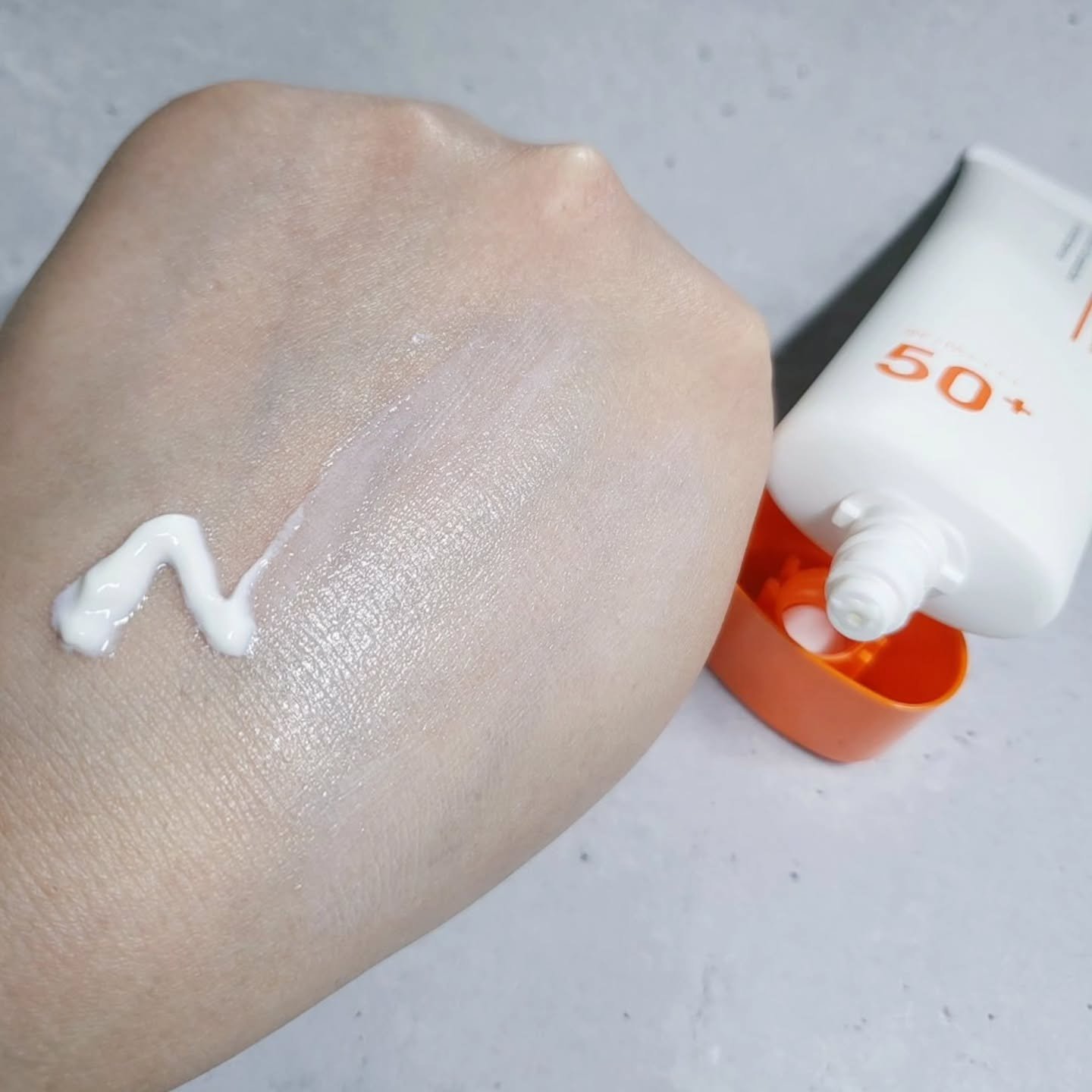 5種のセラミドによるスキンケア効果に日焼け止め効果を加えたサンクリーム SPF50 PA++++で日焼け止め効果もばっちり ふんわりと伸びの良いテクスチャーで塗り広げると自然とトーンアップする感じ