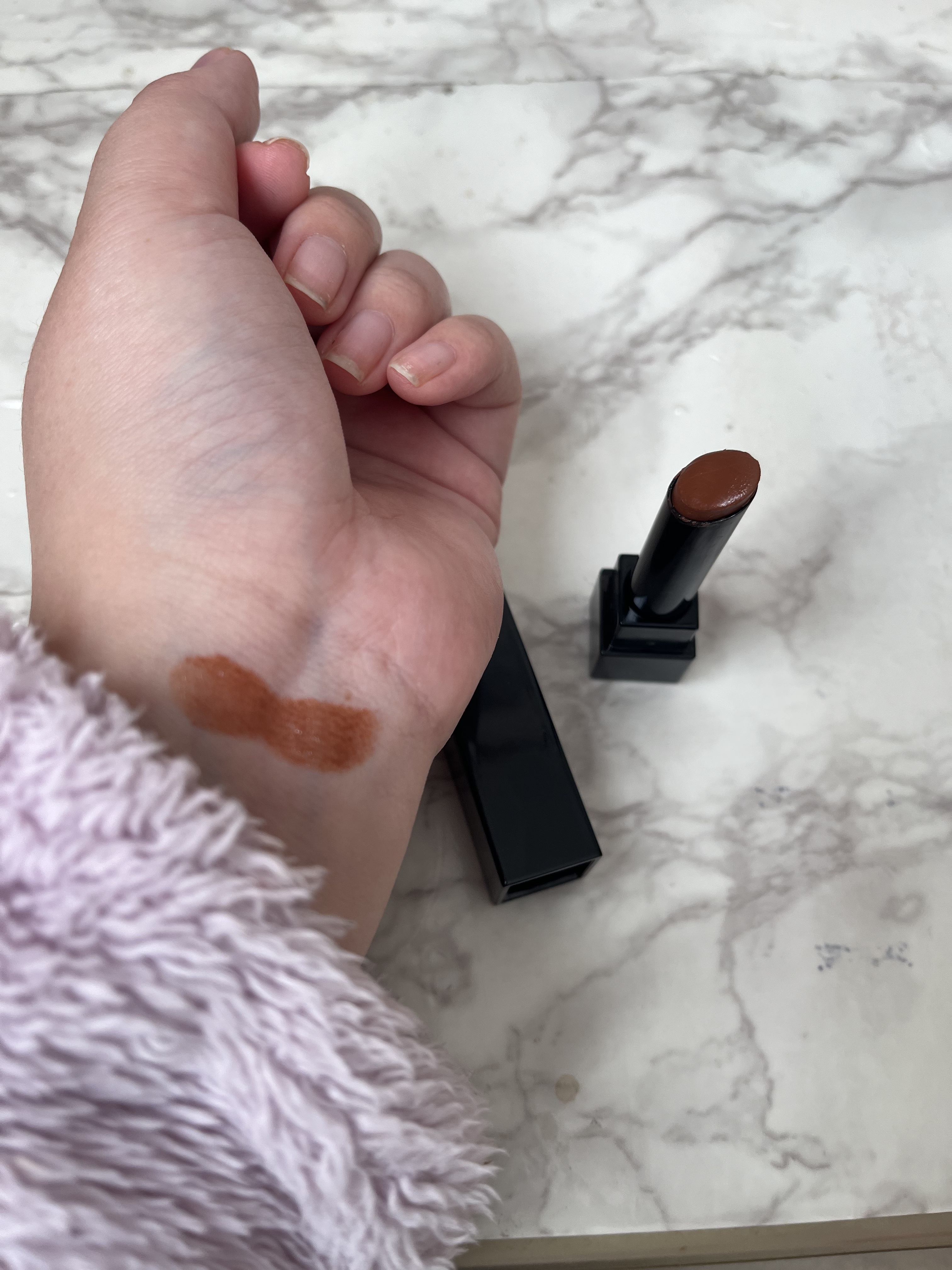 本日、8/18発売のルージュです。エレガンスルージュシュペルブ05番。3.7g3,800円です。スキンケア商品を見に行ったらメイク直しもしてくださり、そのときに塗っていただいたものです。何色か試し、HPから色を顔写真にのせて色味を見られる機能...