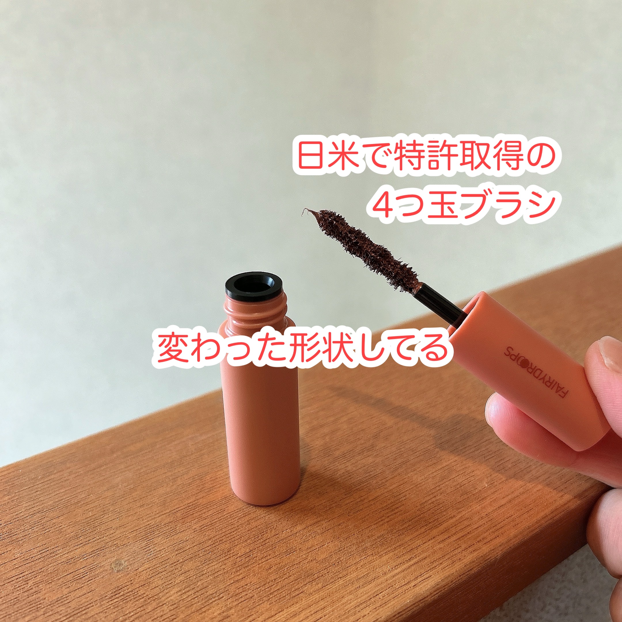 \日米で特許取得の4つ玉ブラシ/フェアリードロップスクアトロラッシュ👀(マスカラフィルムタイプ)4つ玉形状の凹部分が、うぶ毛や下まつ毛まで根元からキャッチしてきれいに伸びてくれるよ!!下向きまつ毛もビューラー要らずで長時間バチっとカールキープ...