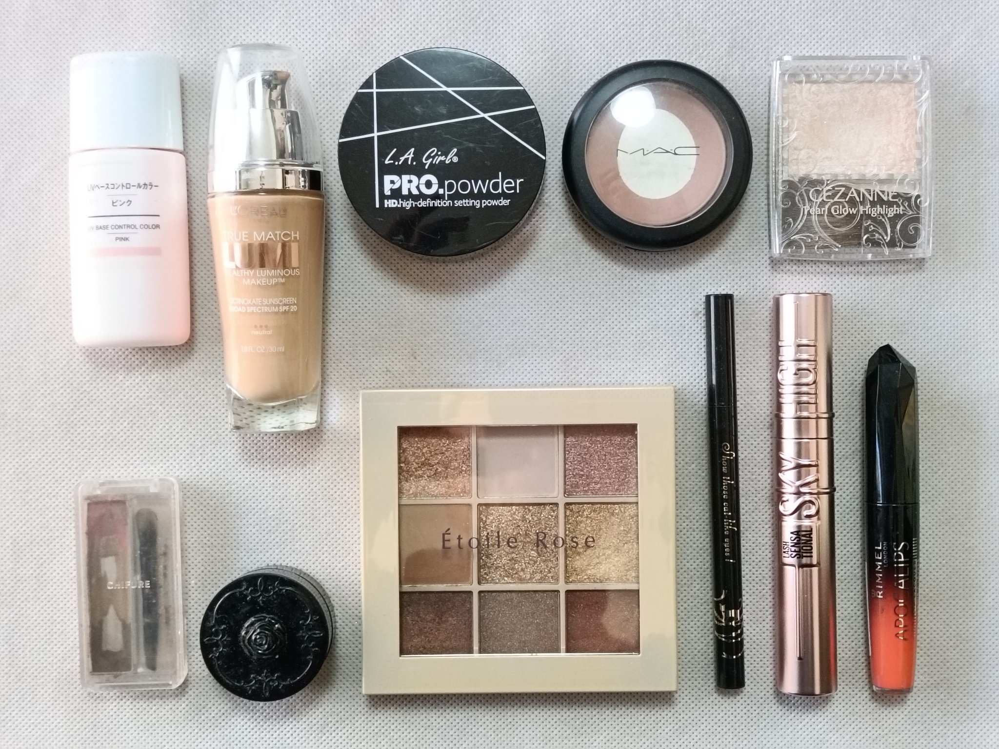 アリィー ニュアンスチェンジUV ジェル RSを、顔全体にまんべんなく塗ります。 RMK RMK ジェルクリーミィファンデーション 103を、顔全体にまんべんなく塗ります。 ジョンソンベビー ジョンソン ベビーパウダーを、顔全体にまんべんなく軽くはたきます。 THE BODY SHOP bronze shade warm glowを、両頬に塗ります。 KATE リフレクトミラーアイズ BR-1の締め色を、眉毛全体にまんべんなく塗ります。 URGLAM UR GLAMBLOOMING EYE COLOR PALETTE 01を、使用しました。 ちふれ リキッド アイライナー 筆ペンタイプ BK30 ブラックを、塗ります。 CEZANNE エアリーカールマスカラを、まつ毛全体にまんべんなく塗ります。 MAYBELLINE NEW YORK コロッサルボリュームエクスプレスを、まつ毛全体にまんべんなく塗ります。 MAYBELLINE NEW YORK SPステイ マットインク 135を、唇全体にまんべんなく塗ります。