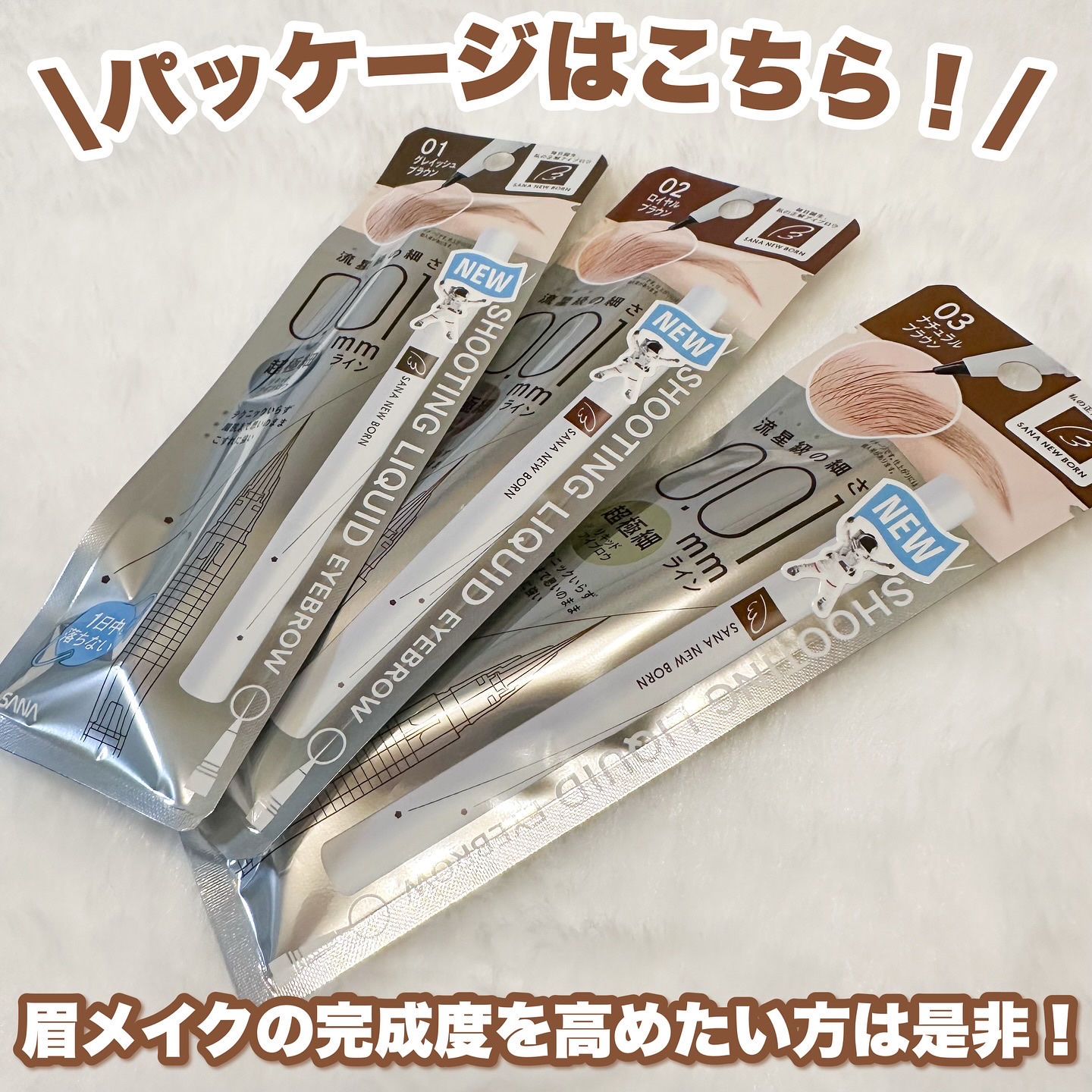 流星級0.01mmラインでリアルな仕上がりが叶う♡超極細リキッドアイブロウ🌠 まるで自眉のようにリアルな0.01mmラインが描ける超極細筆を採用しているから不器用な私でも1本1本綺麗に描ける🖌️ 今回は黒髪や暗めの髪色の方にオススメの01 グレイッシュブラウンを使ってみたよ!自眉とほぼ同じ色だから眉マスカラを使わなくても大丈夫👌 独自の染料処方を採用しているから1日中落ちにくいよ👀 特に眉尻がキリッと綺麗に描けるから眉尻がぼんやりしがちで苦手意識がある人にオススメしたい!