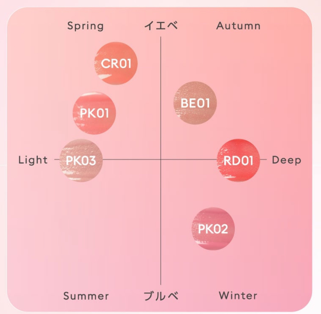 - <CR02 PERSIMMON> 水、シクロペンタシロキサン、変性アルコール、ブチレングリコール、エチルヘキサン酸セチル、メチルトリメチコン、タルク、グリセリン、ペンチレングリコール、PEG-10ジメチコン、トリエチルヘキサノイン、合成フルオロフロゴパイト、メタクリル酸メチルクロスポリマー、ポリプロピレンシルセスキオキサン、トリメチルシロキシシリケート、マイカ(C.I. 77019)、硫酸マグネシウム、フェノキシエタノール、セチルPEG/PPG-10/1ジメチコン、ジステアルジモニウムヘクトライト、ジメチコン、酸化鉄(C.I. 77491)、ジメチコンクロスポリマー、香料、酸化チタン(C.I. 77891)、トリエトキシカプリリルシラン、赤226(C.I. 73360)、エチルヘキシルグリセリン、EDTA-2Na、黄酸化鉄(C.I. 77492)、セイヨウミザクラ果実エキス、ダマスクバラ花水、イチジク果実エキス、オレンジ果皮油、ホホバ種子油、ユチャ種子油、ニゲラサチバ種子油、プニカグラナタム種子油、カニナバラ果実油、ブドウ果実エキス、アンズ果実エキス、1,2-ヘキサンジオール、ローブッシュ(ブルーベリー)果実エキス、フラガリアチロエンシス(イチゴ)果実エキス、モモ果実エキス、ラズベリー果実エキス、リンゴ果実エキス、カプリリルグリコール、オクタンジオール、オレンジ果実エキス、カキ果実エキス、テウチグルミ(クルミ)種子エキス、マグワ果実エキス、ザクロ果実エキス、セイヨウナシ果実エキス、トマト果実エキス <RD01> 水、シクロペンタシロキサン、変性アルコール、ブチレングリコール、エチルヘキサン酸セチル、メチルトリメチコン、タルク、グリセリン、ペンチレングリコール、PEG-10ジメチコン、トリエチルヘキサノイン、合成フルオロフロゴパイト、メタクリル酸メチルクロスポリマー、ポリプロピレンシルセスキオキサン、トリメチルシロキシシリケート、マイカ(C.I. 77019)、硫酸マグネシウム、フェノキシエタノール、セチルPEG/PPG-10/1ジメチコン、ジステアルジモニウムヘクトライト、ジメチコン、赤226(C.I. 73360)、ジメチコンクロスポリマー、香料、トリエトキシカプリリルシラン、エチルヘキシルグリセリン、黄酸化鉄(C.I. 77492)、EDTA-2Na、酸化鉄(C.I. 77499)、セイヨウミザクラ果実エキス、ダマスクバラ花水、オレンジ果皮油、ホホバ種子油、ユチャ種子油、ニゲラサチバ種子油、プニカグラナタム種子油、カニナバラ果実油、ブドウ果実エキス、アンズ果実エキス、1,2-ヘキサンジオール、フラガリアチロエンシス(イチゴ)果実エキス、モモ果実エキス、カプリリルグリコール、オクタンジオール