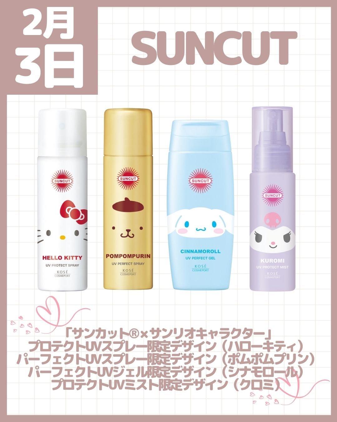 8月2日(金)より順次発売 PLAZA、MINiPLA、PLAZAオンラインストア限定 → #excel(#エクセル)・パウダー&ペンシル アイブロウEX「アイシナモロール」(限定デザイン2色)各¥1,595 8月21日(水)発売 → #BLENDBERRY(#ブレンドベリー)・リップバルーン(新3色うち限定1色)各¥1,650 9月1日(日)発売 → #CLUB(#クラブ)・すっぴんパウダーC ホワイトフローラルブーケの香り ハローキティ コラボ デザイン(限定)¥1,760