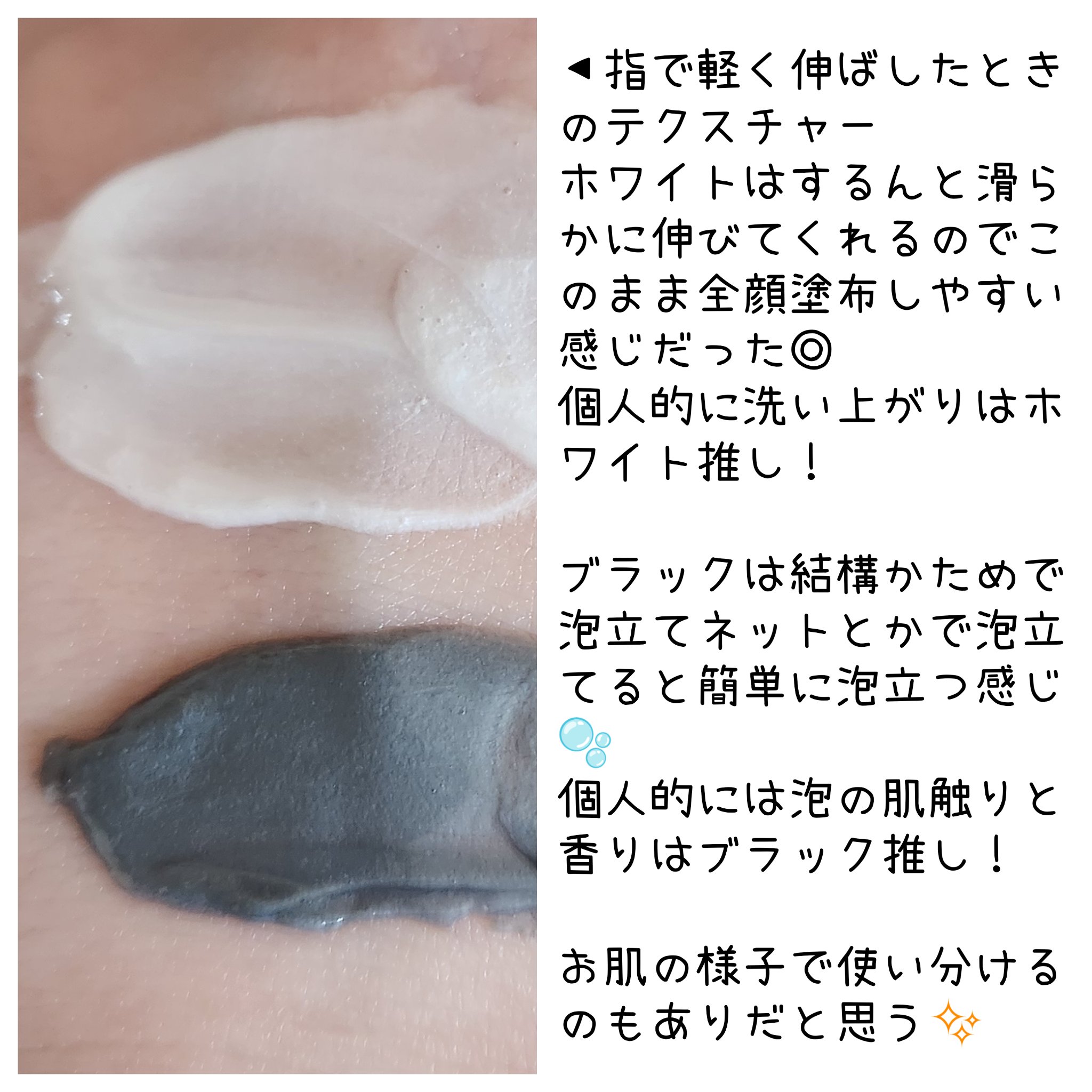 使用方法は簡単で、 適量(4〜5cm程度)を取って伸ばして待つだけ! 10秒程度で泡が立つので、3分ほど待ちます⌛ 泡パックだから洗う…と思いきやこちらは【洗い流さなくて良い】んです! マジックバブルエッセンスパックは大容量のボトルタイプとこちらのミニタイプがあるんですが、ミニタイプでも4〜5回使えるからしっかり試せる✨ 両方とも保湿力高め(特にピンク)なので脂性肌さんはペタペタする感じが気になっちゃうかも🤔❓ 香りはうっすらでわたしはそこまで気にならなかったですね🙌 泡のパック、初めて使用したのですがお肌にぱちぱちと泡が生まれていく感触が伝わって楽しい🥳 本当にシンプルステップでスペシャルケア感覚を味わえちゃうのでズボラさんにもおすすめ✨