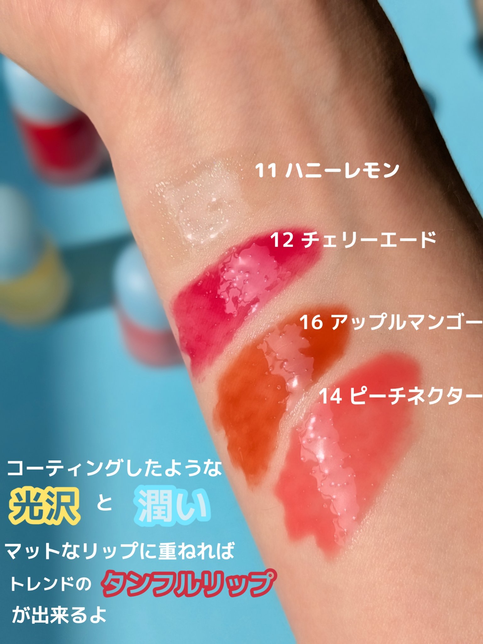 TOCOBO💄ジューシーベリープランピングリップオイル2025年3月より、ロフト・PLAZAにて販売開始になる4種セット(日本限定カラー2種)シロップのようなリップオイルでぷるぷるに💋発色もよいです💓11ハニーレモンはプランピング効果MAXで...