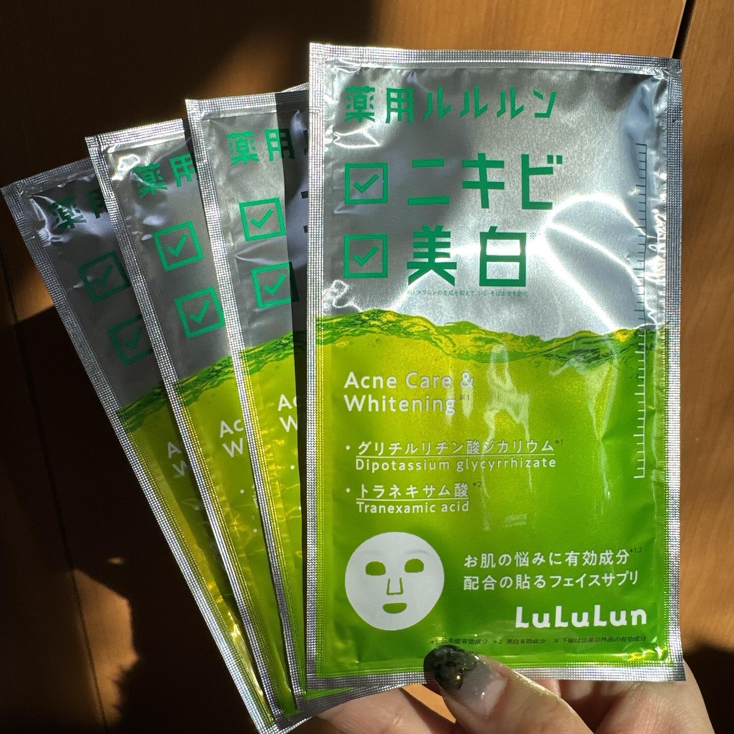 - 【医薬部外品】 ルルルン初の医薬部外品、「薬用ルルルン」が登場。 「薬用ルルルン 美白アクネ」はニキビを予防したい方、美白※1・くすみ※2をケアしたい方におすすめ。 (※1 メラニンの生成を抑えて、シミ・そばかすを防ぐ ※2乾燥による)