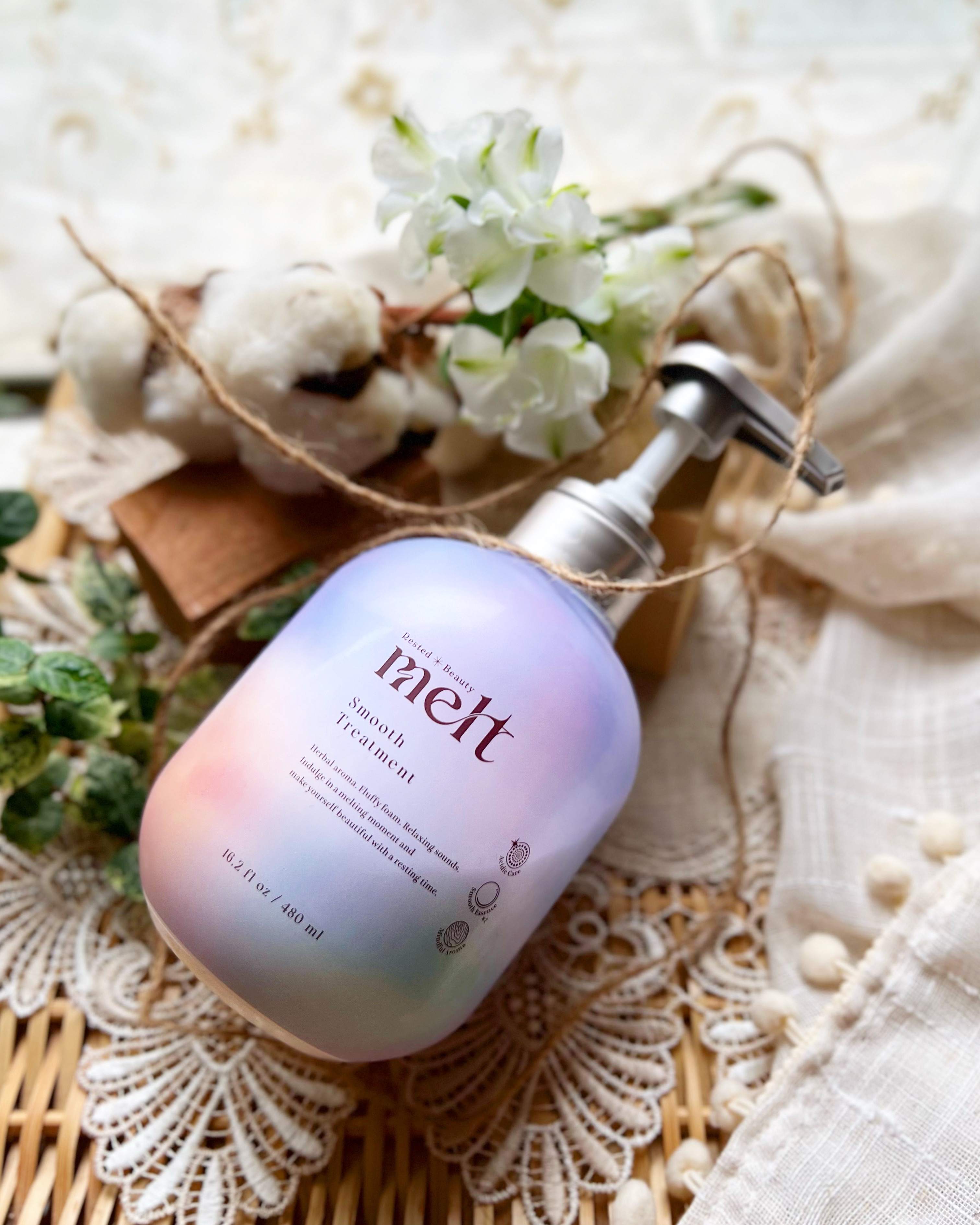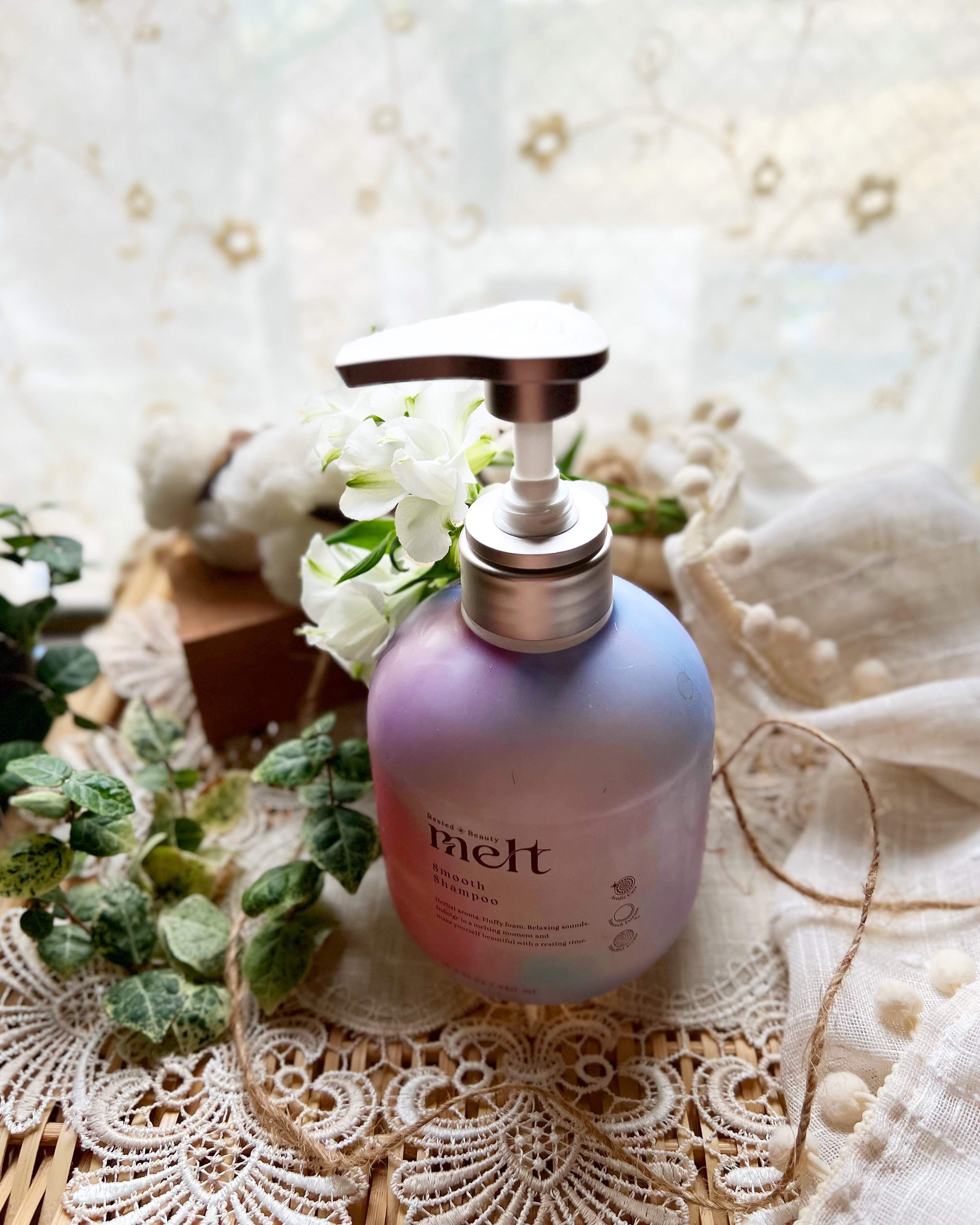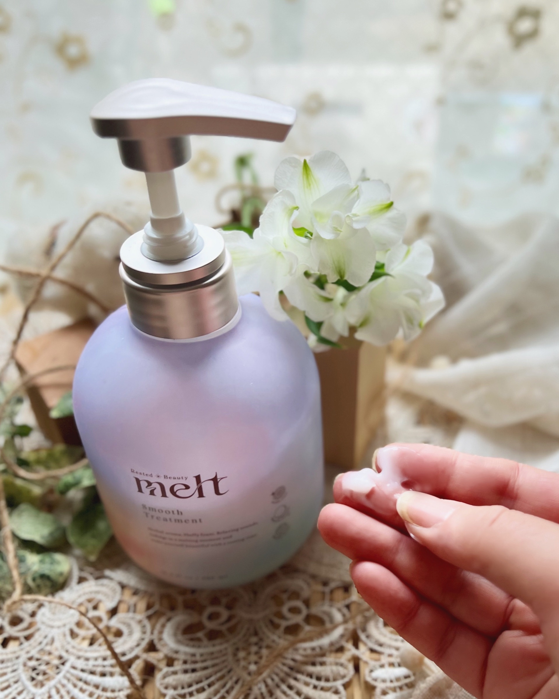 meltスムースシャンプー&トリートメント✨ スムースラインが3月に新登場するようです✨ 乾燥やダメージでパッサパサな髪でしたが、1回の使用でまとまり感を感じました✨ ピオニー&フィグの香りが癒される! リピ決定💖