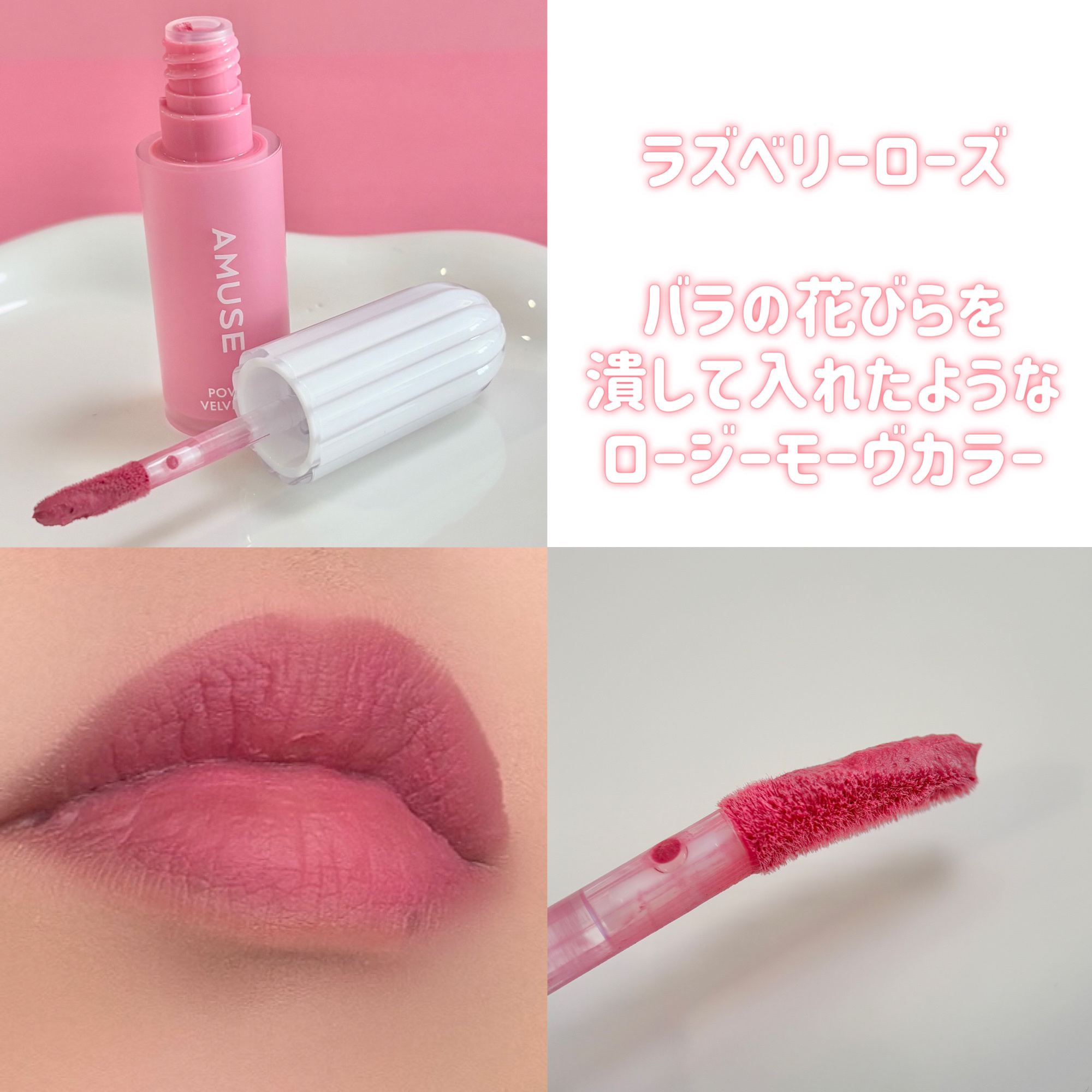 塗った瞬間厚みのあるプランピングになる新感覚パウダーベルベットティントで有名なAMUSEで初めて、綺麗に長時間長持ちリアルつや消しパウダーブラーリップが誕生! しわ一つなくなめらかに埋まるプライマー式リップでウォニョンリップのように自然なふっくら唇を演出できちゃいます💄 ベルベットティントは重くなる印象があるけど薄いテクスチャで重くならず着け心地も軽やかで気持ちいい!