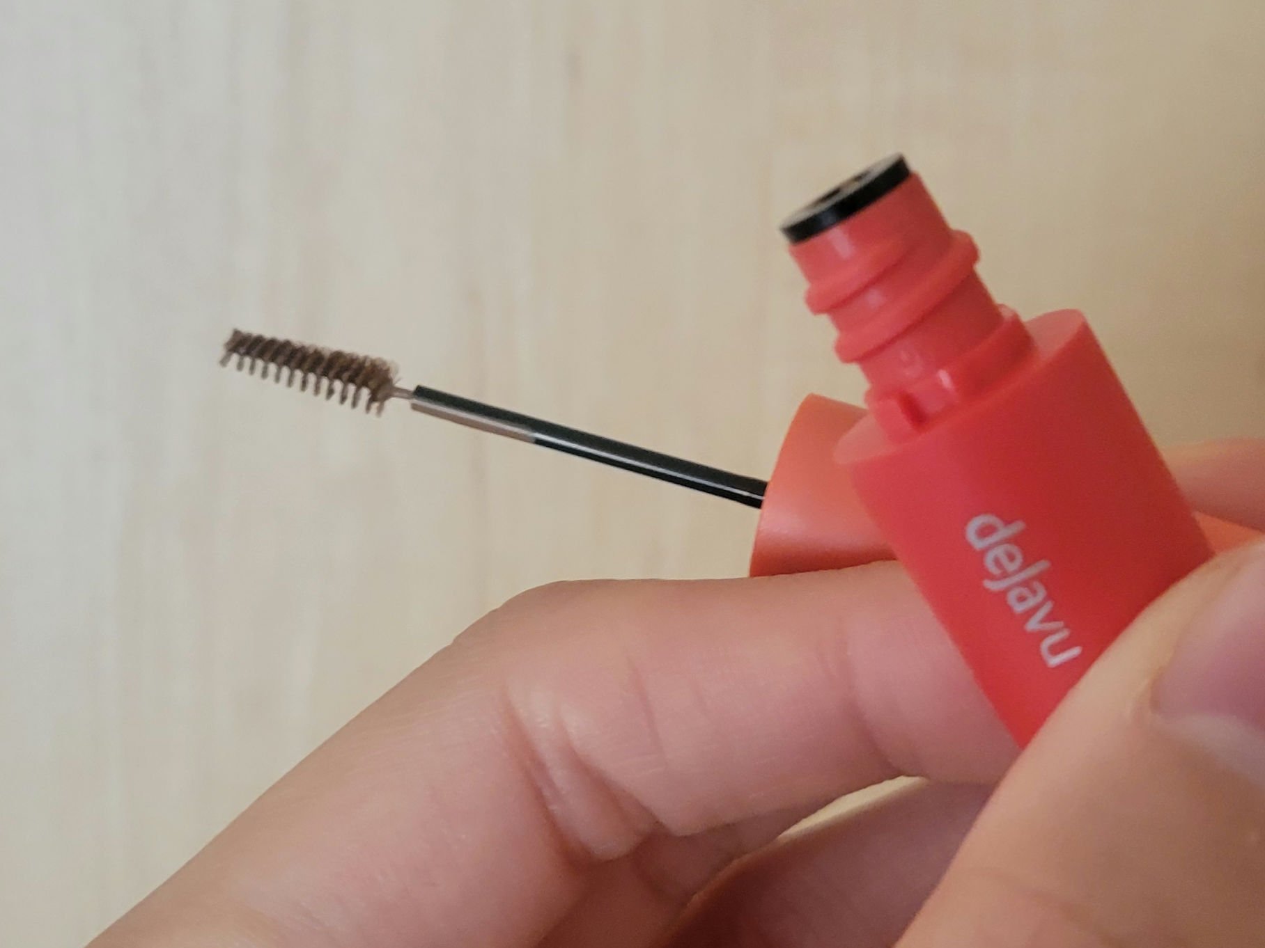 1本1本色づき固まらない「フィルム眉カラー」 塗りやすい極小ブラシで簡単垢抜け✨ デジャヴュ独自の薄膜フィルムを採用。 毛がパリッと固まらず、タバやダマのないふんわり自然な眉に。 フィルムタイプで速乾性が高く、皮脂・汗・こすれに強いのに、お湯だけで簡単に落とせます✨