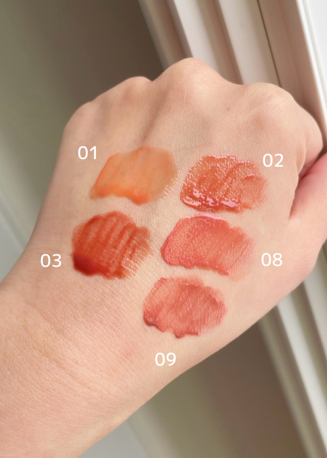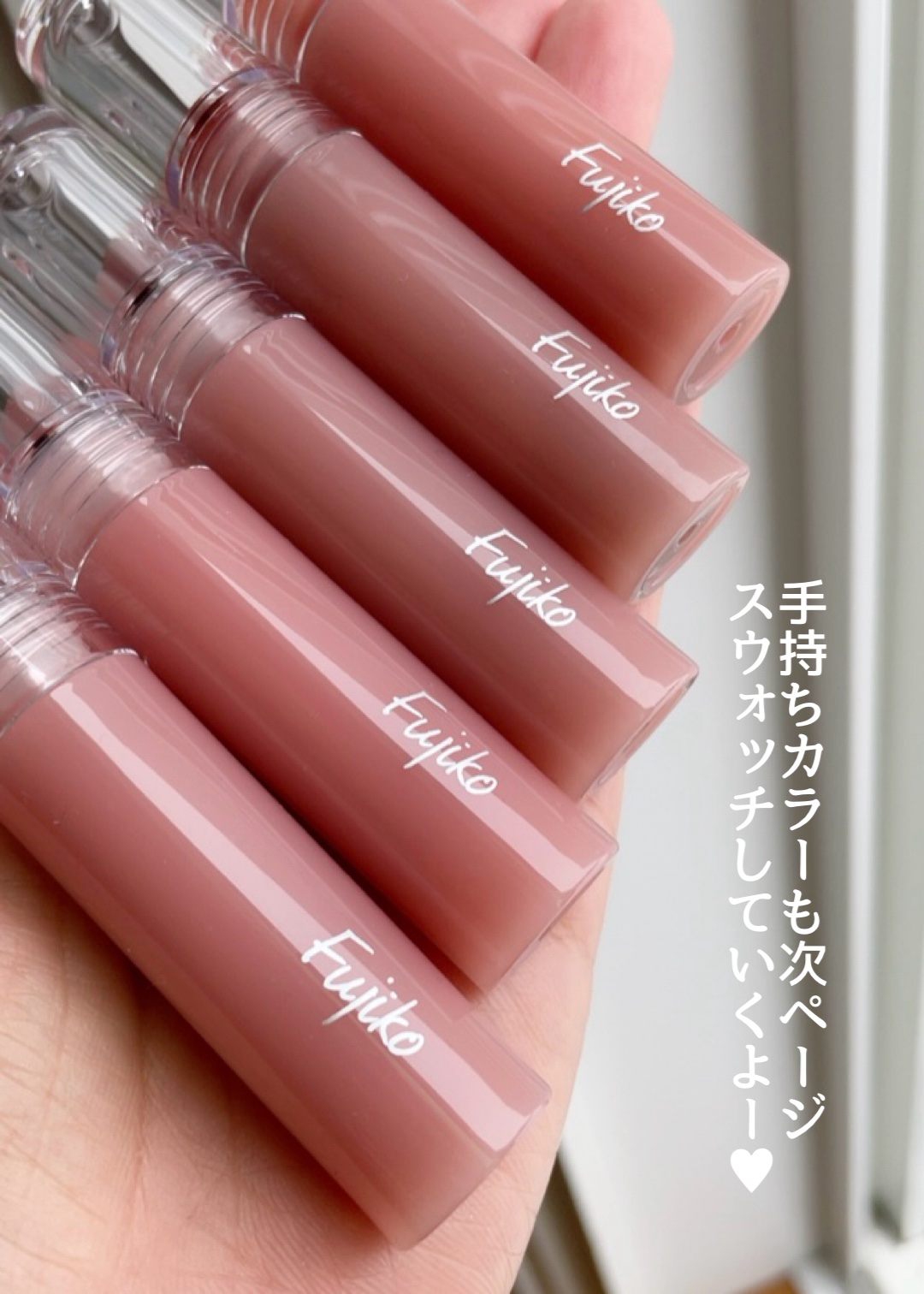大人気のテイントに新色登場! 08苺ミルクのピンク 09小豆ミルクのベージュ 2色ともミルキーなちゅるちゅる多幸感カラー♡ カラー名から想像してたのより落ち着いた雰囲気の使いやすいカラーでした! めちゃくちゃ可愛いけど!! Fujikoはなかなかブルベに微笑んでくれない!!!