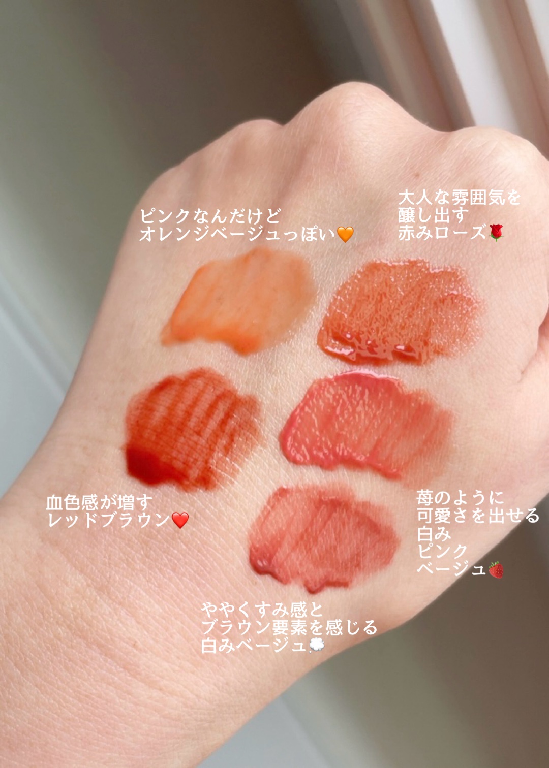 ウォータリーティントリップ03 ベージュブラウン660円 ずうううっと長く愛用中なのはダントツでこれ。 透け感のあるツヤ赤みブラウンでおしゃれに落ち着いた雰囲気になる。 秋のモードな雰囲気が出せるカラーで赤みのあるブラウンが好きな人は絶対好き。 こなれ感の出るオレンジブラウン系で秋冬のオレンジメイクにぴったり。