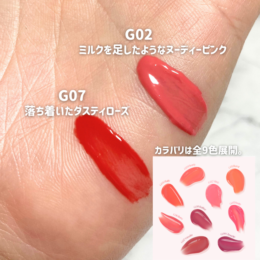 | 軽いテクスチャで透き通るように輝く水光ティント。このリップ、色持ちが本当に良い🥺♡ | 詳細を見る | |