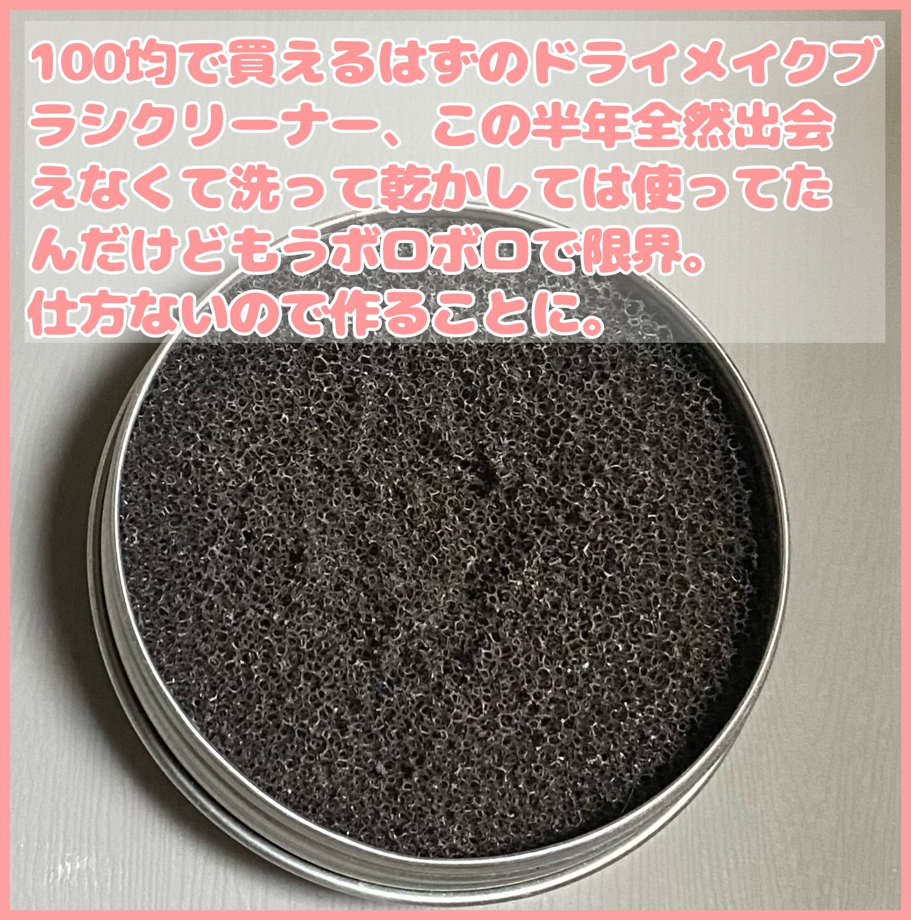 アイシャドウとかの色とかラメをいちいちティッシュで拭き取って使ってたよ〜。セリアでドライメイクブラシクリーナーなるものを発見!小さいサイズもありました。それは携帯用に良さそう。これは便利〜。くるくるするとブラシについたラメや色が取れる!スポン...
