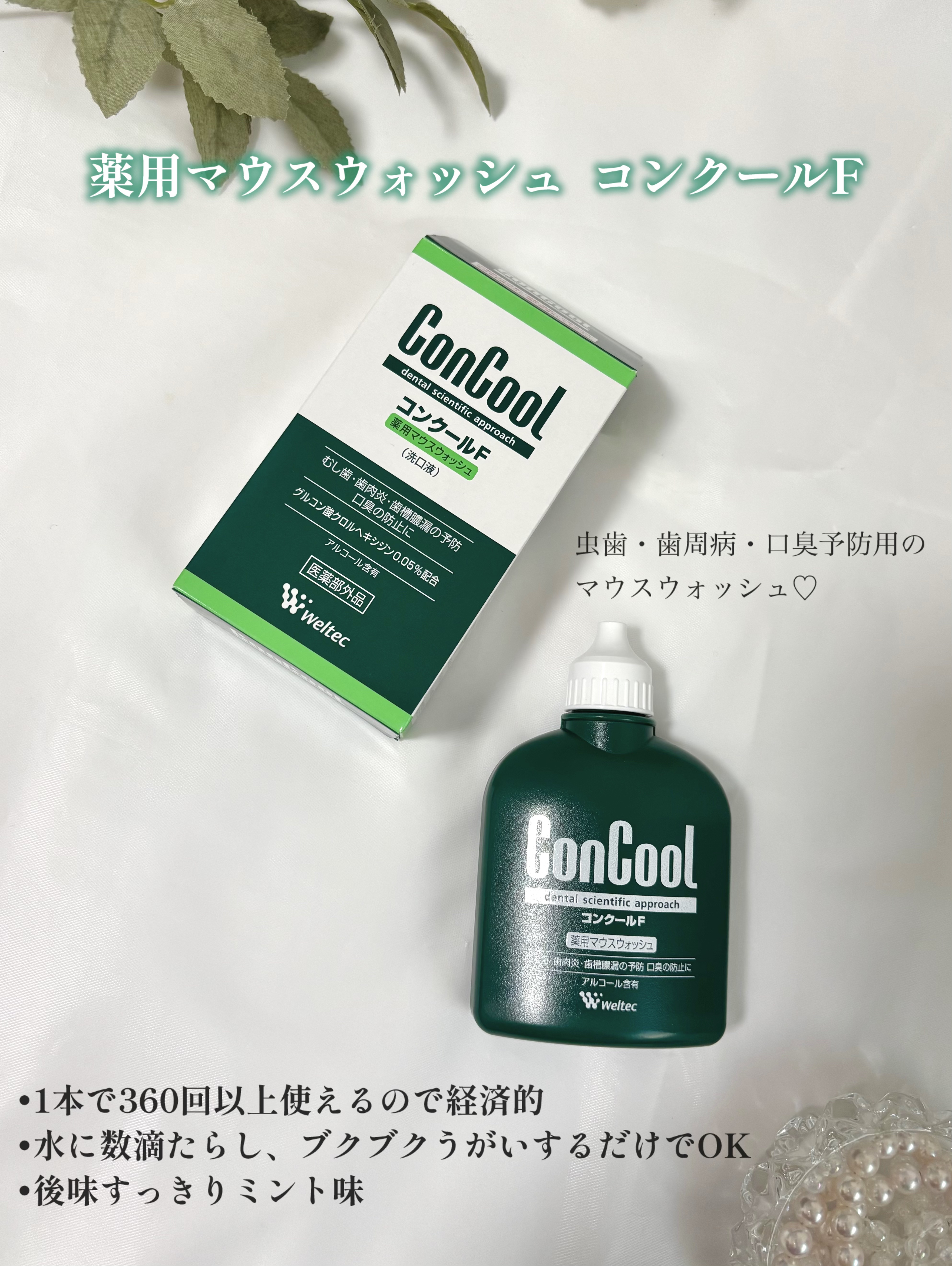 虫歯・歯周病・口臭予防用の水で薄めて使うマウスウォッシュ 100mlで1本で360回以上使えるので経済的✨️ 刺激がなく後味すっきりミント味 歯医者さんに置いてあってコンクールはよく見た事あったけどこれからはマウスウオッシュはこれ使う🪥