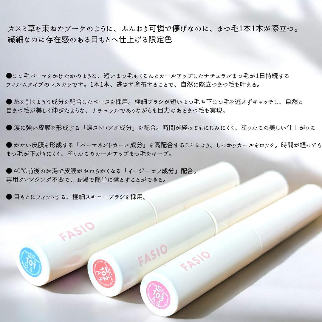 春の限定カラーが登場 FASIOの極細マスカラをご紹介🪻 カスミ草のような柔らかいカラー フィルムタイプでお湯オフOK カスミ草ブーケのような春カラー3色が限定発売🪻
