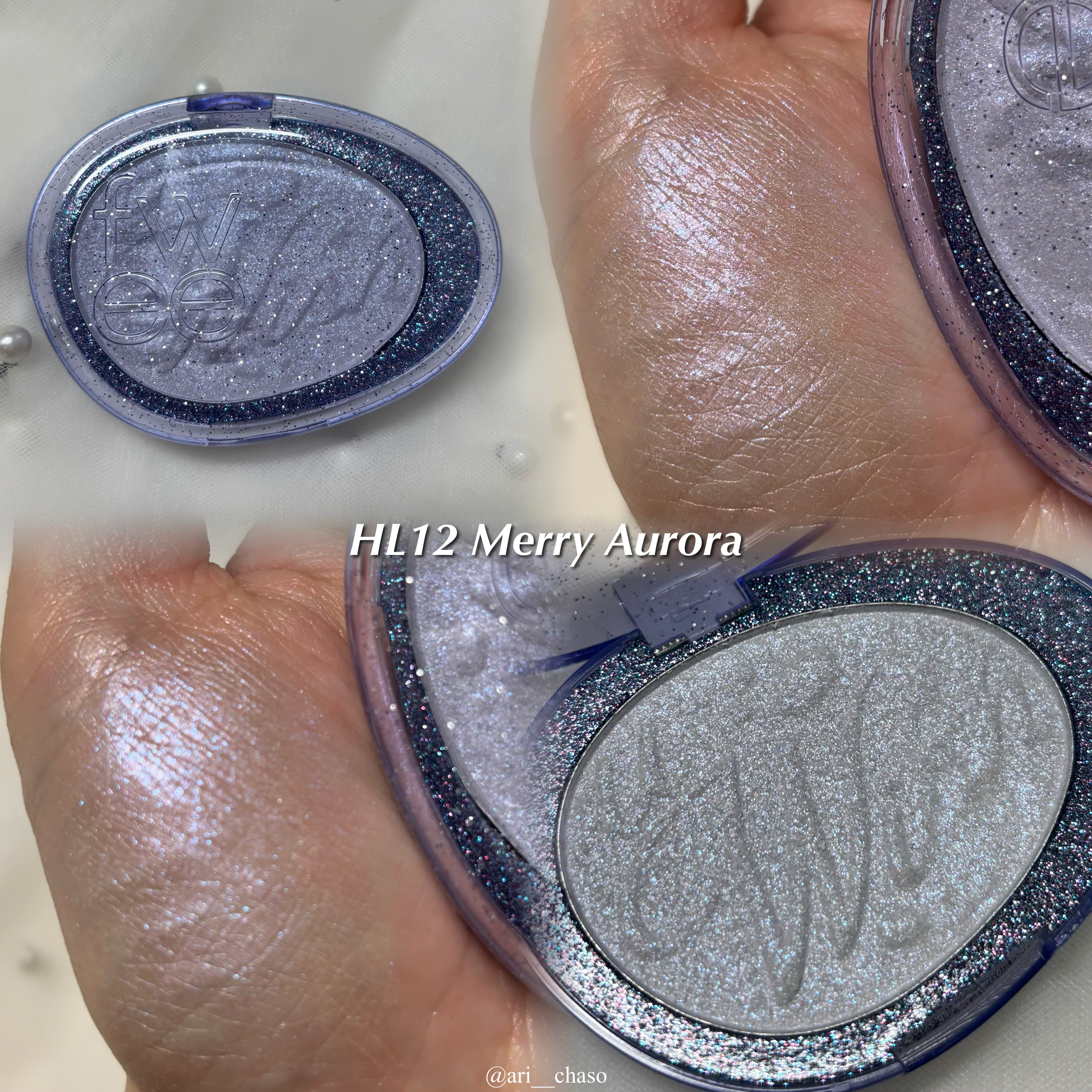 致死量の煌めき💫 遅ればせながらdasiqueのHoliday Collectionを購入🎄 01 Moon Light 暖かく輝く月明かりグリッターをたっぷり詰め 華やかなホリデームードを演出するプリズムシャドウパレット 02 Aurora 神秘的に輝くオーロラの光グリッターをたっぷり詰め込み、夢幻的なホリデームードを演出するプリズムシャドウパレット