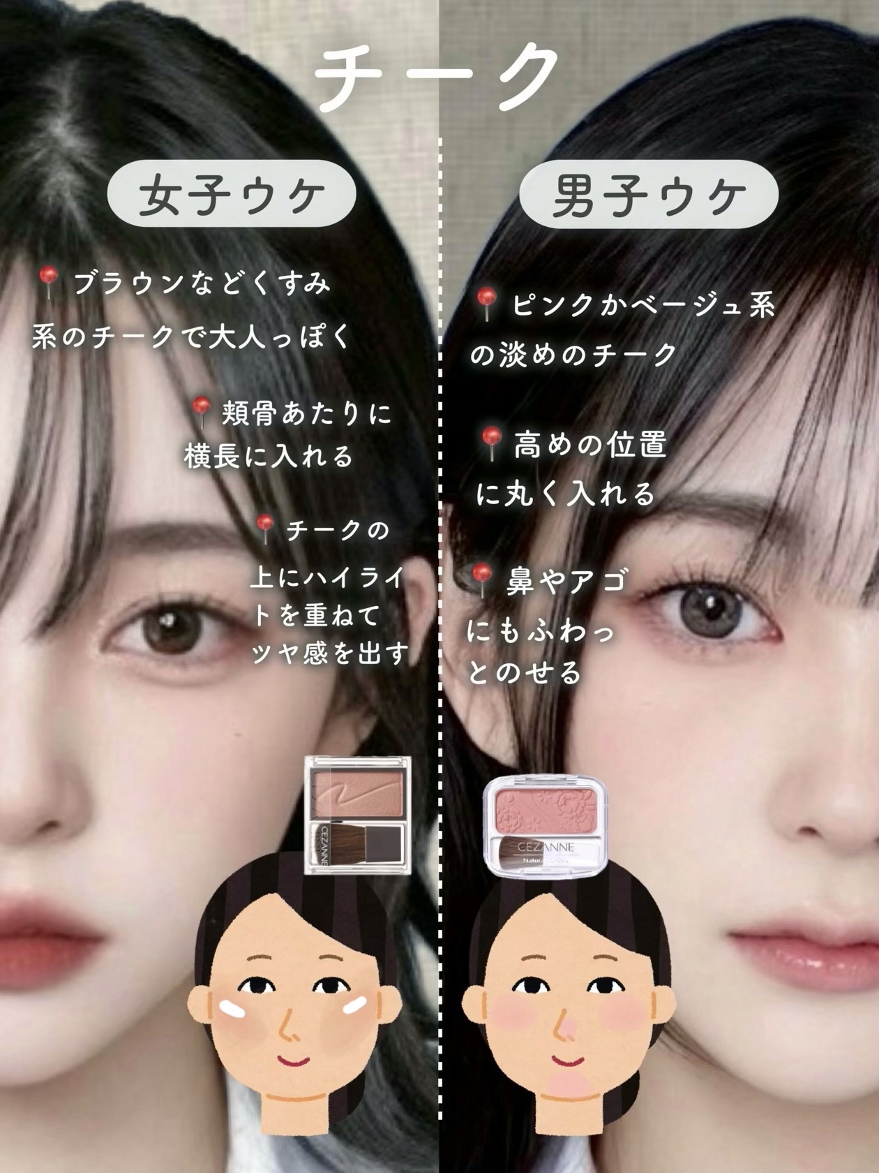 ベースメイクの順番はファンデーションの種類によっても違うのですが、 アイメイクはアイシャドウ→ビューラー→アイライン→マスカラという順番で行います。 アイメイクとのバランスを考えながら、どのリップを塗るかを決めます。 パウダーチークとクリームチークがありますが、クリームチークはムラになりやすいので初心者さんはパウダーがいいかも🙆♀️ ベースメイクの最後でもOKですが、全体のバランスを見ながら入れることでシェーディングが濃くなりすぎたりハイライトを付けすぎるなどの失敗が少なくなります。