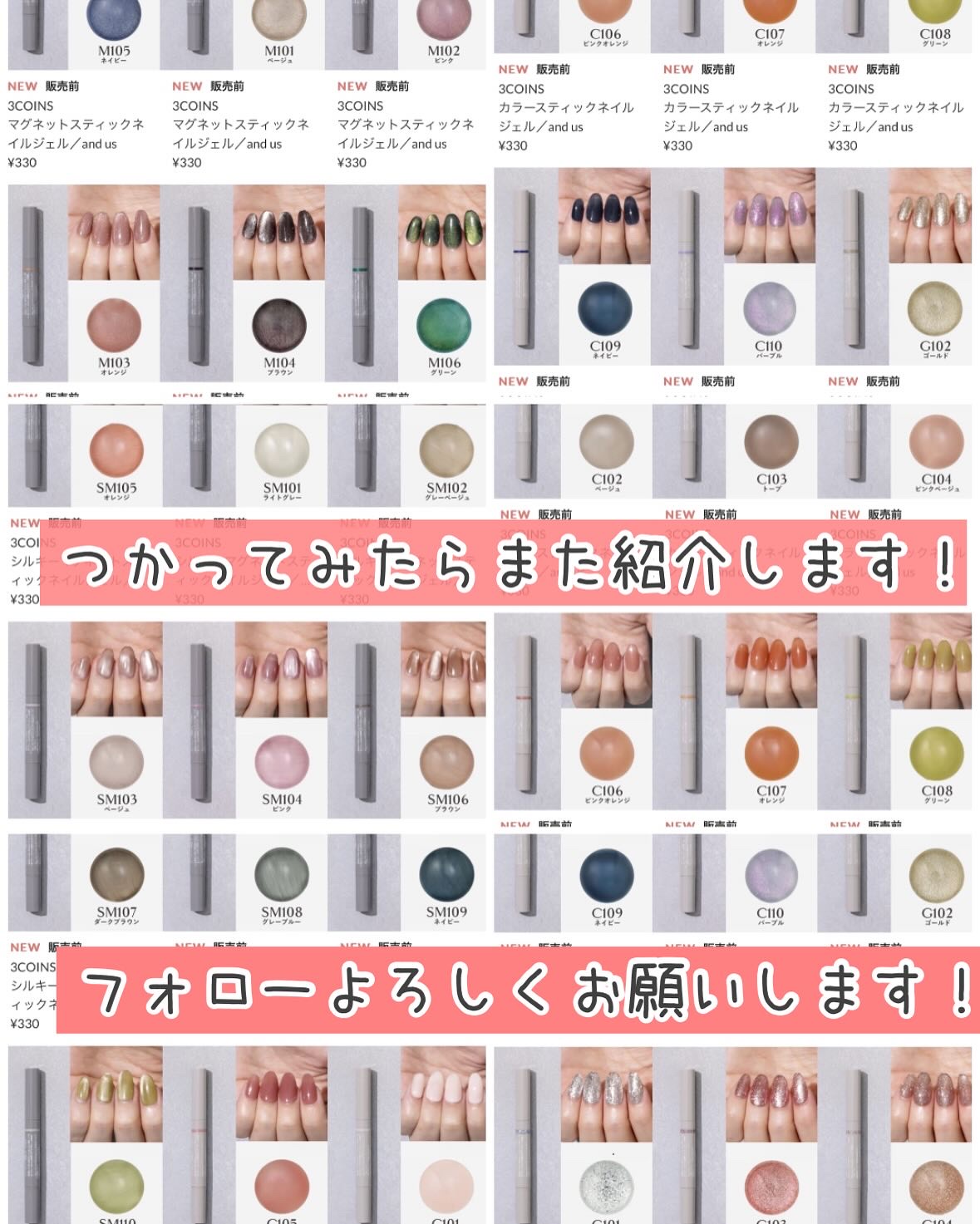 セリアのマグネットジェルは税込110円の最安値! 昨年の秋ごろ発売のカラーからリニューアルしてラメの動きがよくなっています✨ 最初に紹介した6つはリニューアルしたカラーで、 昨年発売のリニューアル前のカラーとは色味が全然違うので要注意!ラメの...