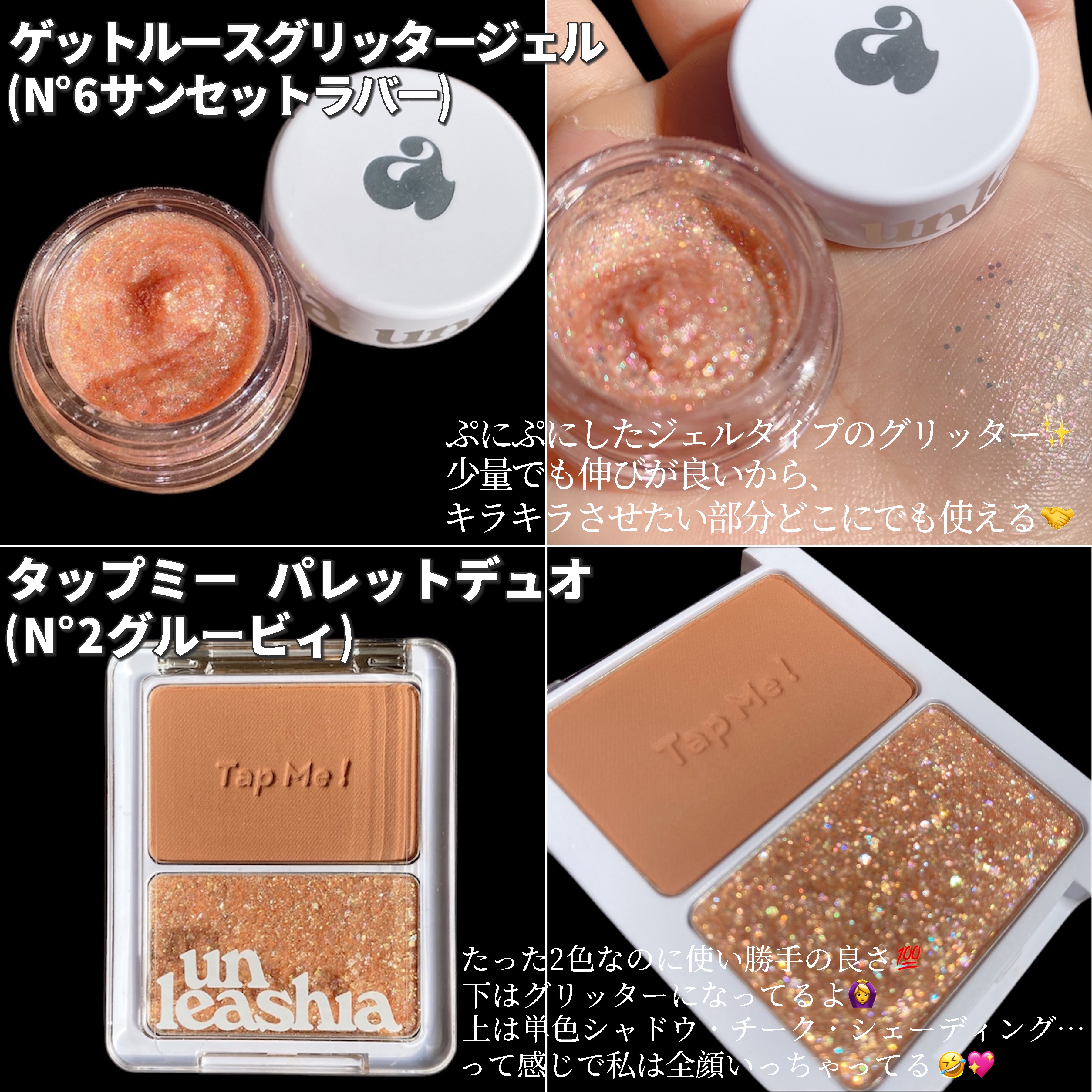 ラメ・グリッターの輝きがレベチなアンリシア💎 今回はアイメイク系中心にご紹介します! 暖色系のピンクやオレンジ、イエローが可愛い サテン系ハイライト☆ ギラつかないから超〜自然🥹! ブルーとシルバーの輝きがやばすぎる…! トロトロなジェルテクスチャーで伸びが良く乾くとピタッと密着して落ちにくい🙂↕️