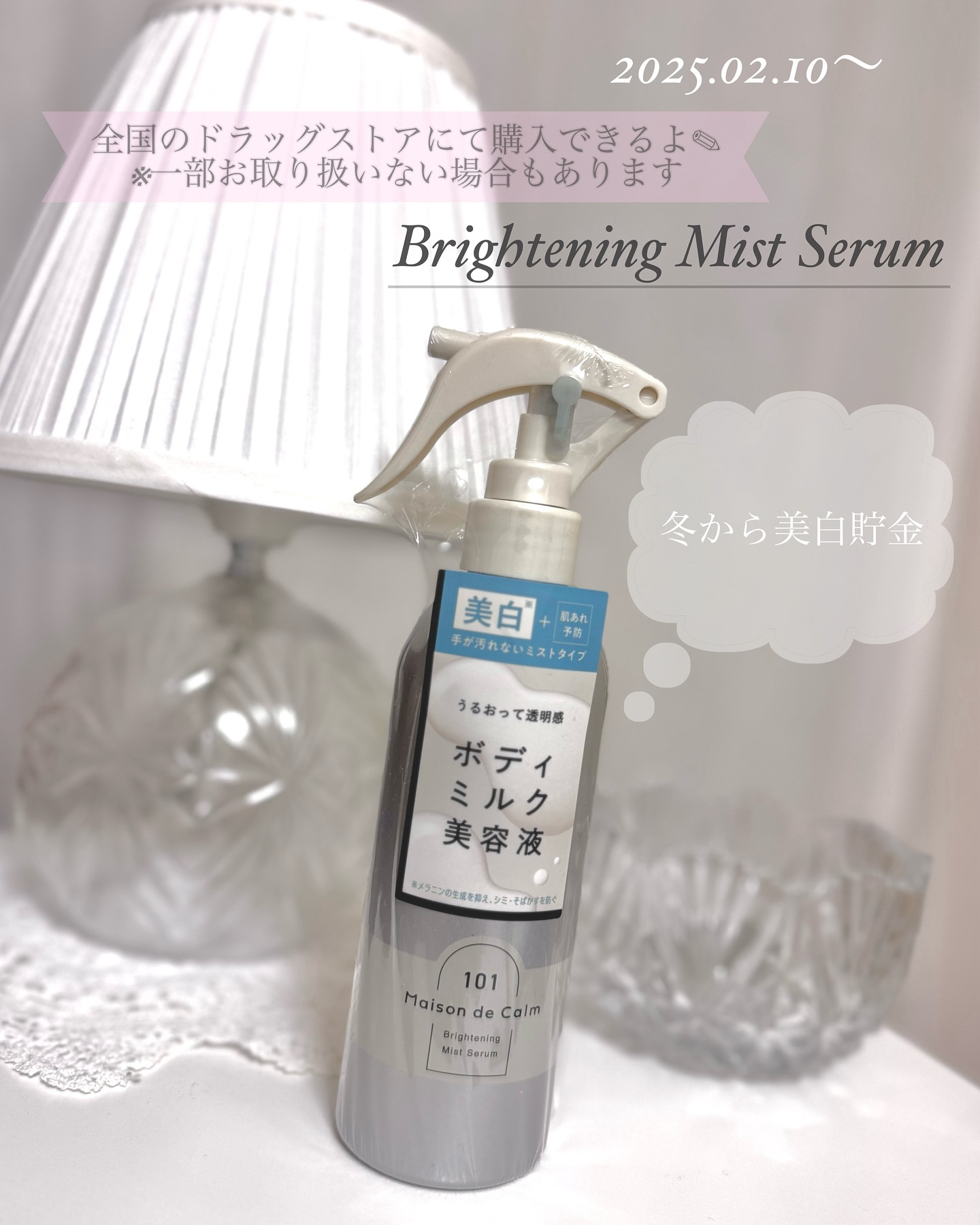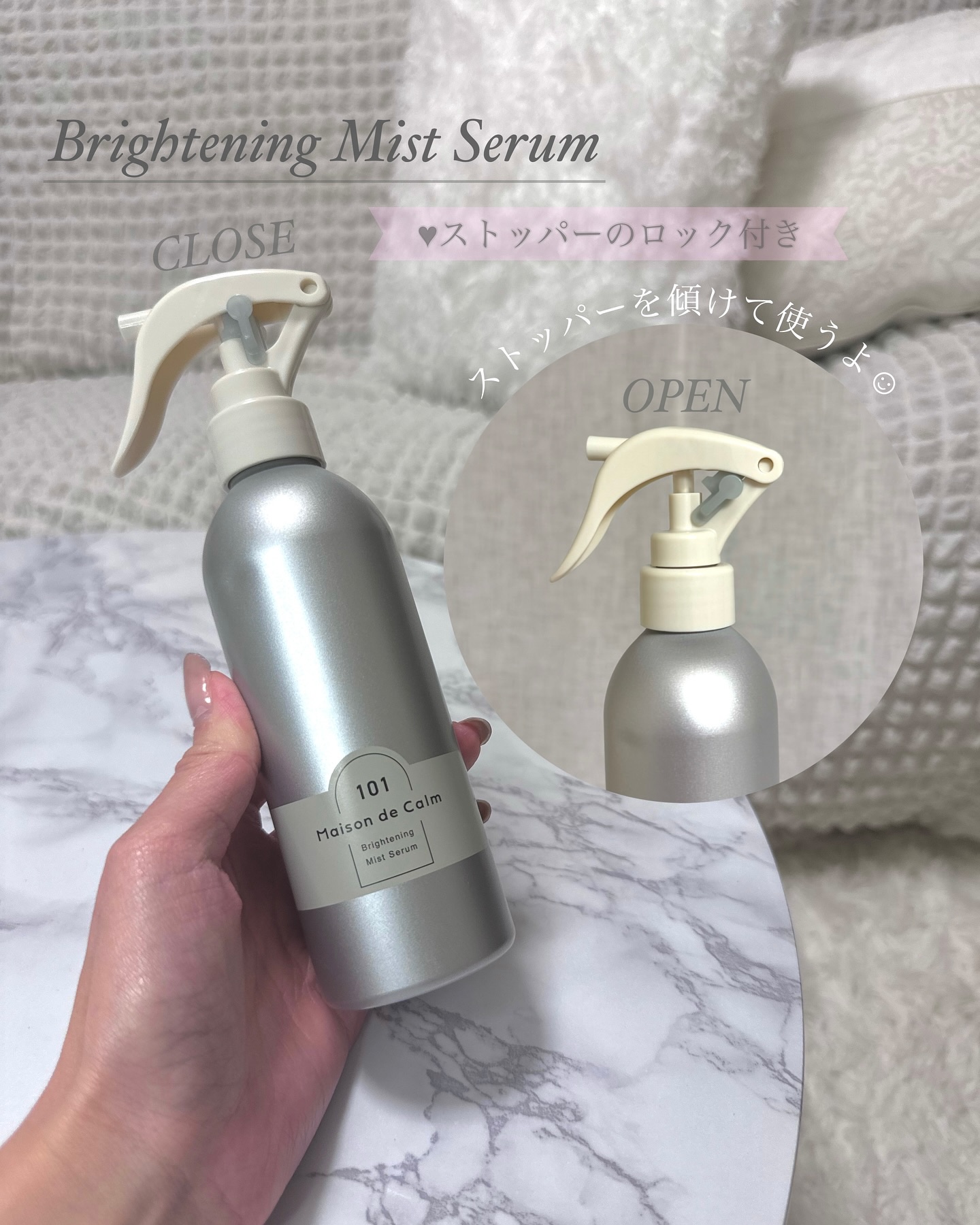 手軽に美白と肌荒れ予防を両立できるアイテムを探しているなら、メゾン ド カームのブライトニング ミストセラムがピッタリ💗 このミストセラム、何と言っても「片手でシュッと」使える手軽さが魅力👏🏻 油分と水分が同時に届いて、肌に潤いを与えながら、シミやそばかすの元となるメラニンの生成を抑えてくれるんだって🎶