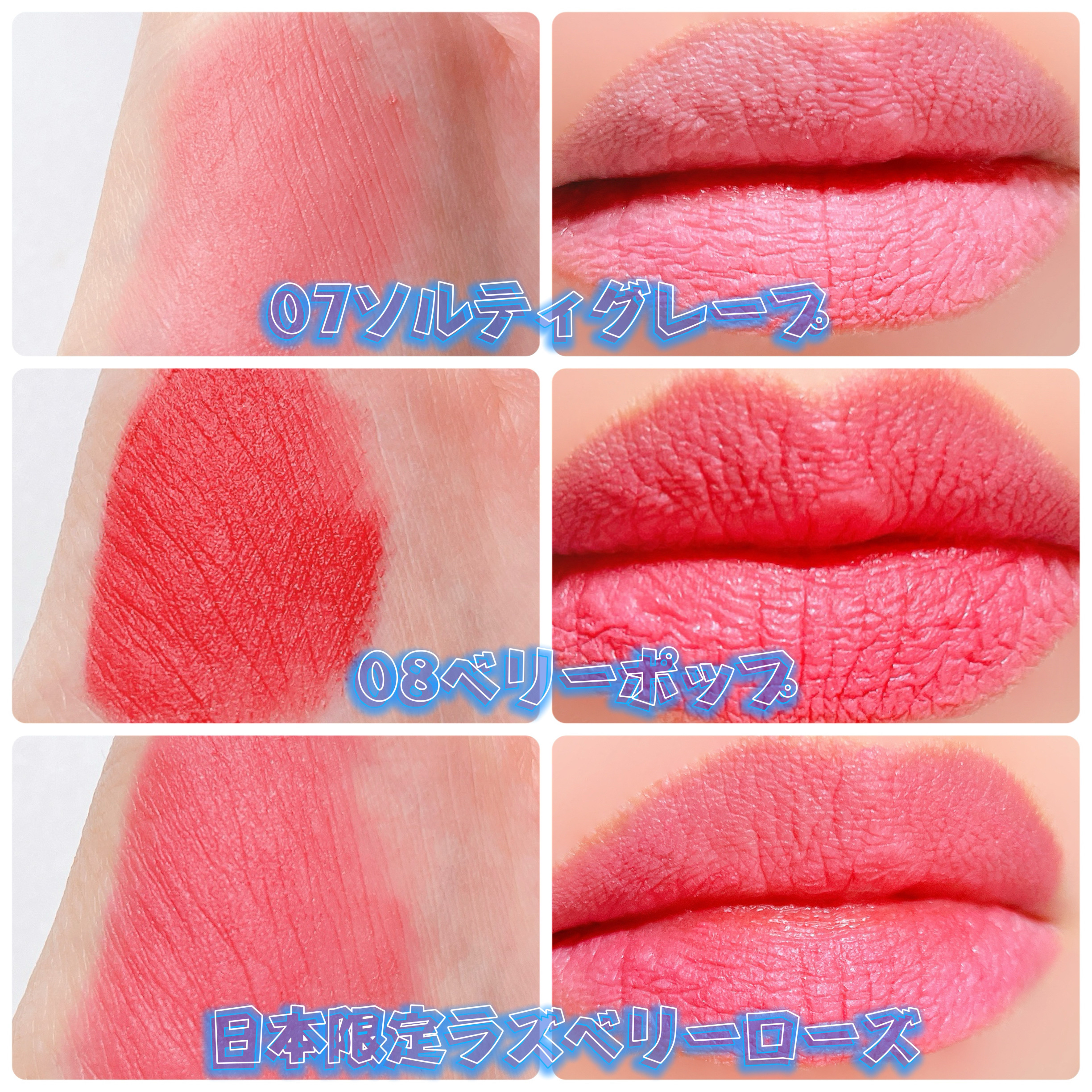 メガ割\全色レビュー/ふわふわ雲リップ✼••┈┈••✼••┈┈••✼••┈┈••✼••┈┈••✼▶︎AMUSEPOWDERVELVETTINT日本限定カラー1色+オリジナル8色、全9色をまとめてレポ🫶透け感のない高発色で、縦じわをなめらかに埋...
