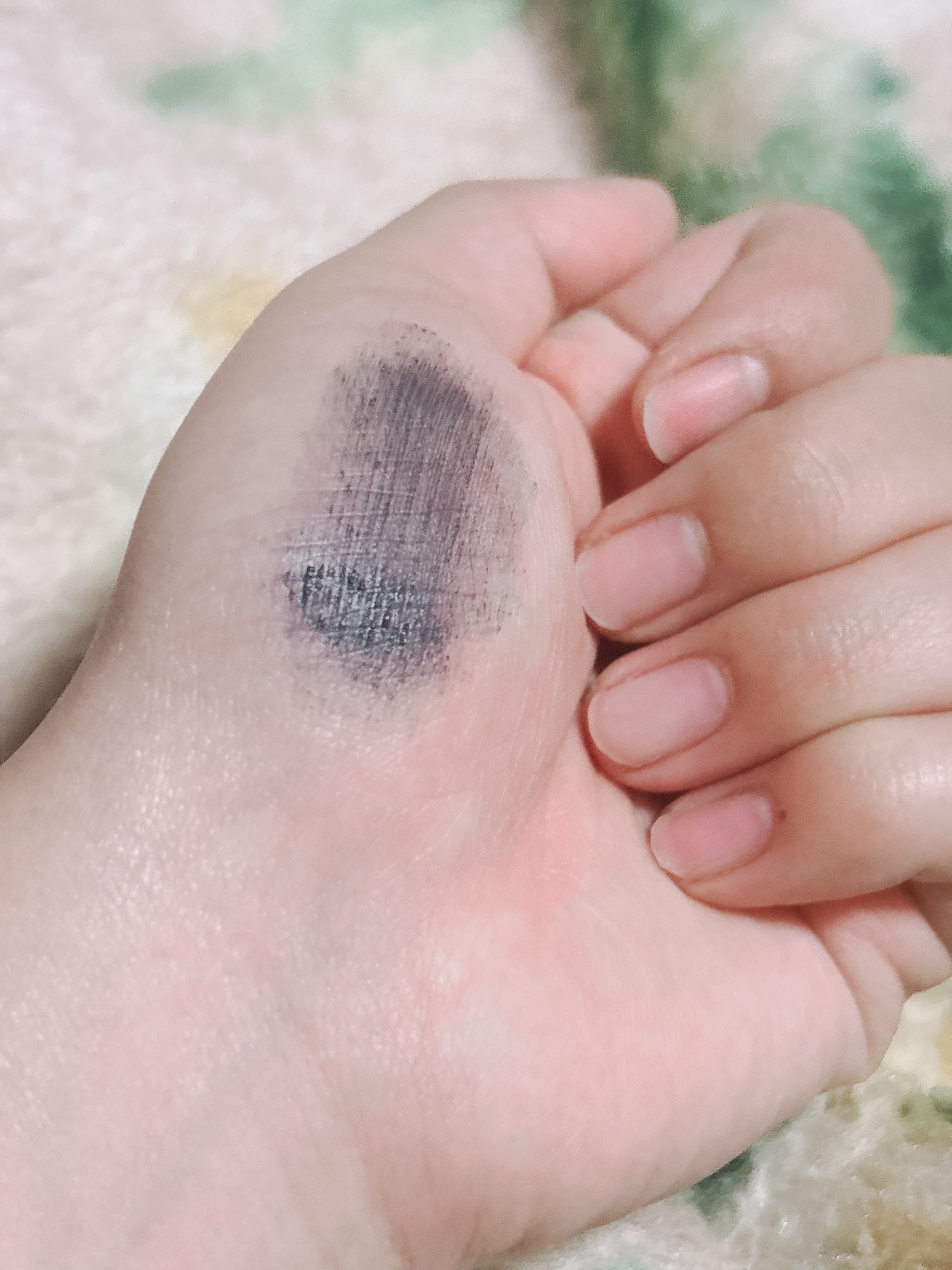 青みがかった灰色っぽい 実際にまつ毛につけてみるとそこまで色味は目立たないかも? マスカラの先端がブラシっぽくなっててダマになりにくくて 軽く束感まつ毛が作れた これはリピしたいくらいでした #PR #メイベリン