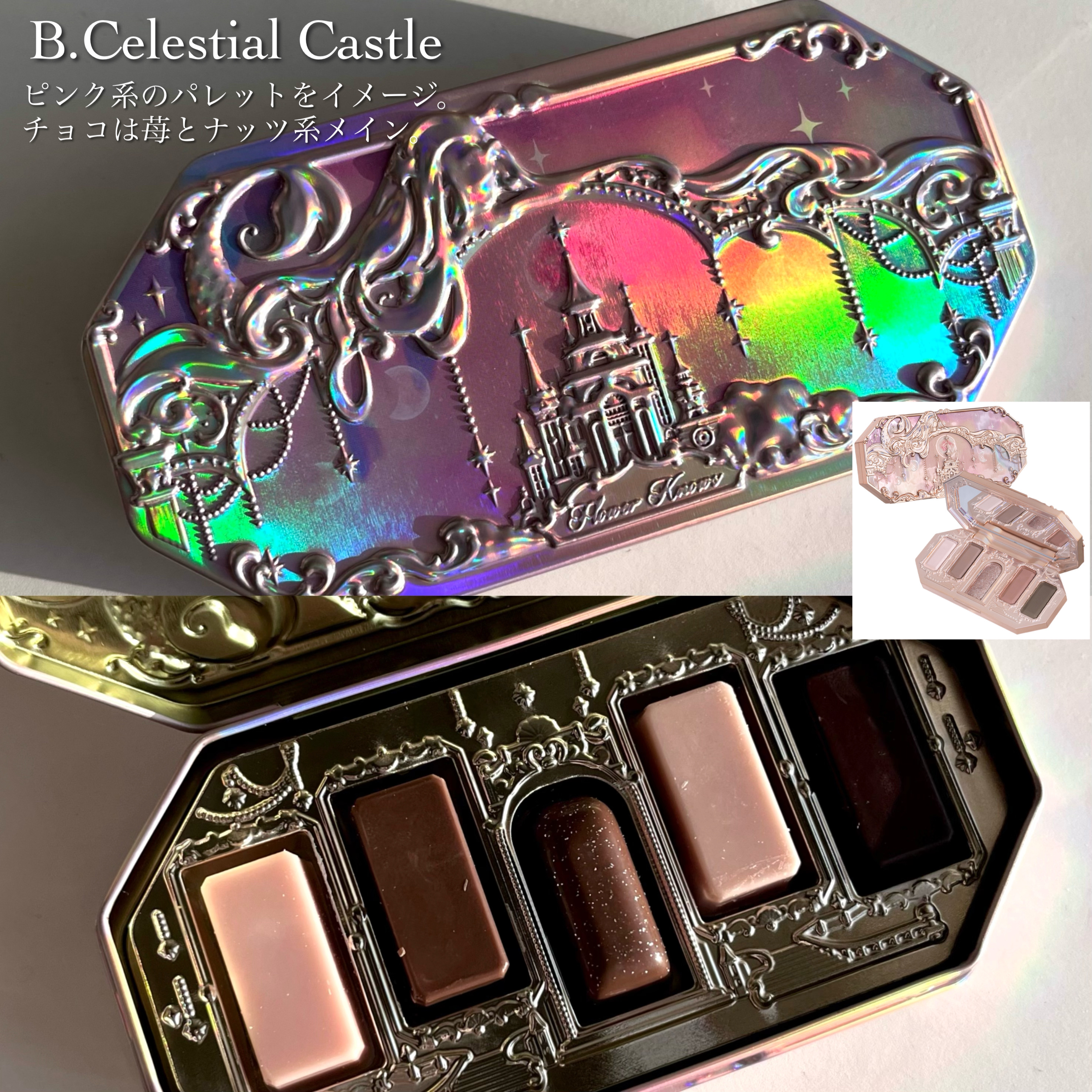 人魚姫の宝石箱がこれまた可愛い。❤︎︎︎︎❤︎FlowerKnows月光人魚シリーズジュエリーアイシャドウパレット02#CelestialCastle天空城❤︎︎︎︎❤︎パケも中も可愛い月光人魚シリーズジュエリーアイズラメがざっくざくで可愛い...