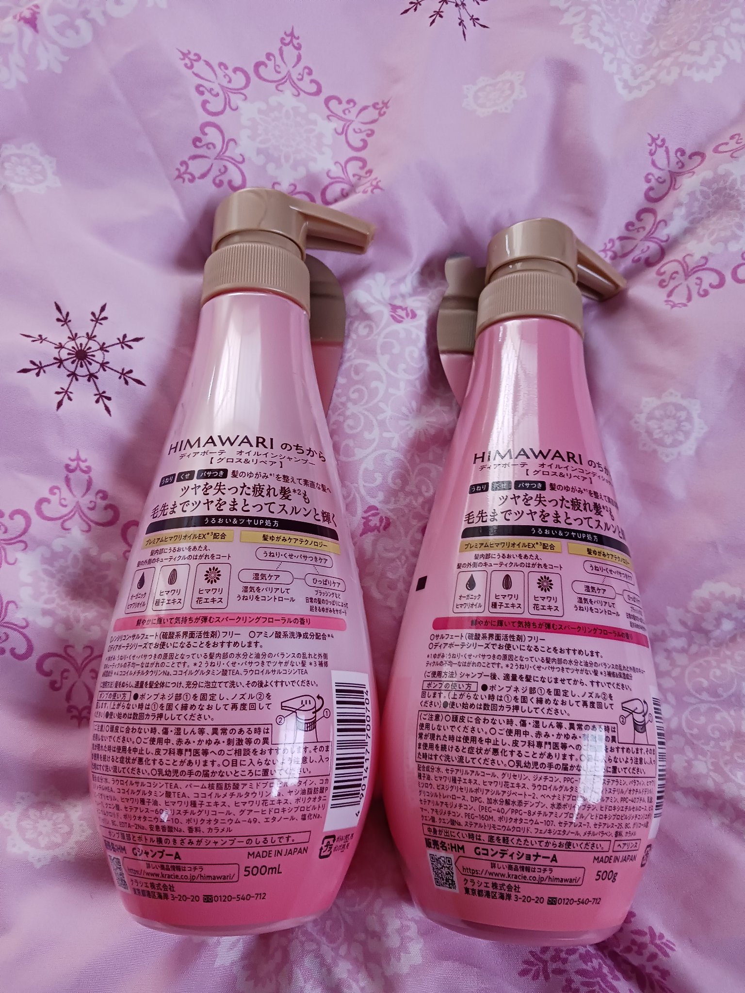 - <シャンプー本体> 水、ラウロイルサルコシンTEA、パーム核脂肪酸アミドプロピルベタイン、コカミドメチルMEA、ココイルグルタミン酸TEA、ココイルメチルタウリンNa、ヤシ油脂肪酸PEG-7グリセリル、ヒマワリ種子油、ヒマワリ種子エキス、ヒマワリ花エキス、ポリクオタニウム-7、クエン酸、セテアレス-60ミリスチルグリコール、グアーヒドロキシプロピルトリモニウムクロリド、ポリクオタニウム-10、ポリクオタニウム-49、エタノール、塩化Na、グリセリン、BG、EDTA-2Na、安息香酸Na、香料、カラメル <コンディショナー本体> 水、ラウロイルサルコシンTEA、パーム核脂肪酸アミドプロピルベタイン、コカミドメチルMEA、ココイルグルタミン酸TEA、ココイルメチルタウリンNa、ヤシ油脂肪酸PEG-7グリセリル、ヒマワリ種子油、ヒマワリ種子エキス、ヒマワリ花エキス、ポリクオタニウム-7、クエン酸、セテアレス-60ミリスチルグリコール、グアーヒドロキシプロピルトリモニウムクロリド、ポリクオタニウム-10、ポリクオタニウム-49、エタノール、塩化Na、グリセリン、BG、EDTA-2Na、安息香酸Na、香料、カラメル <シャンプー詰替> 水、ラウロイルサルコシンTEA、パーム核脂肪酸アミドプロピルベタイン、コカミドメチルMEA、ココイルグルタミン酸TEA、ココイルメチルタウリンNa、ヤシ油脂肪酸PEG-7グリセリル、ヒマワリ種子油、ヒマワリ種子エキス、ヒマワリ花エキス、ポリクオタニウム-7、クエン酸、セテアレス-60ミリスチルグリコール、グアーヒドロキシプロピルトリモニウムクロリド、ポリクオタニウム-10、ポリクオタニウム-49、エタノール、塩化Na、グリセリン、BG、EDTA-2Na、安息香酸Na、香料、カラメル <コンディショナー詰替> 水、ラウロイルサルコシンTEA、パーム核脂肪酸アミドプロピルベタイン、コカミドメチルMEA、ココイルグルタミン酸TEA、ココイルメチルタウリンNa、ヤシ油脂肪酸PEG-7グリセリル、ヒマワリ種子油、ヒマワリ種子エキス、ヒマワリ花エキス、ポリクオタニウム-7、クエン酸、セテアレス-60ミリスチルグリコール、グアーヒドロキシプロピルトリモニウムクロリド、ポリクオタニウム-10、ポリクオタニウム-49、エタノール、塩化Na、グリセリン、BG、EDTA-2Na、安息香酸Na、香料、カラメル