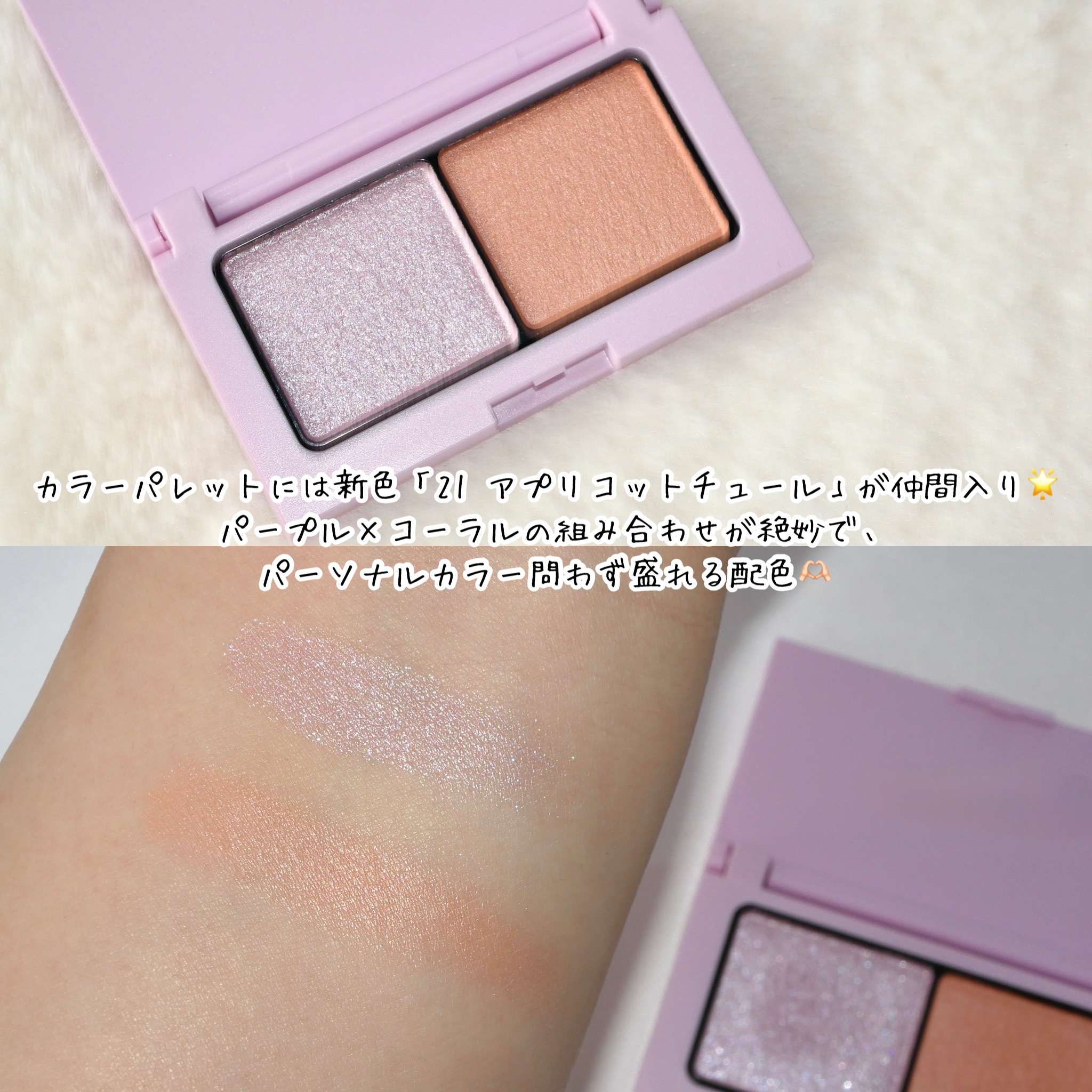 まつ毛の根もとのカーブにぴたっとフィットする絶妙カーブ! まつ毛全体を根もとからキャッチし、しっかりカールアップしてくれます! ゆらめくように輝くパープルラメ✕黄ぐすみしない透け感コーラルのパレット! パソカ問わず使いやすい温かみのあるコーラルベージュメイクに仕上がります♡♡ これ信じられないくらい可愛い!! パソカ問わず使いやすい透け感発色の穏やかコーラル×ゆらめくように輝くピンク、ブルー、シルバーパール!
