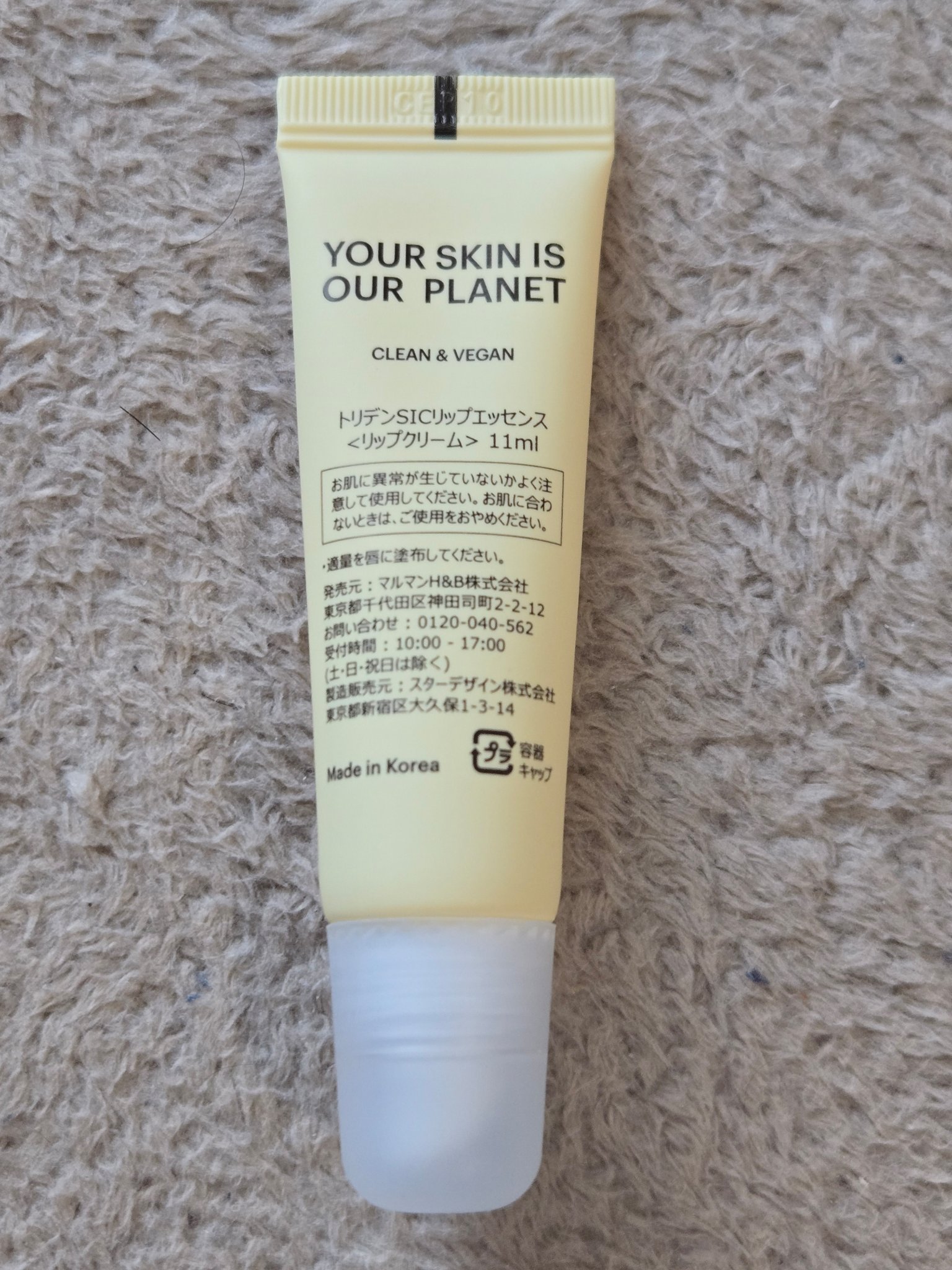 1本で3役の万能リップ。保湿、角質ケア、スリーピングパックとしても使える。 5種類のセラミド、オーガニックホホバ種子油、オリーブ果実油で保湿しながら、済州島産ヒジキ抽出成分とザクロ発酵酢成分が角質ケアをサポートしてくれるそうです♪ テクスチャと保湿力は好きだけれど個人的に私には香りと味がダメでした💦