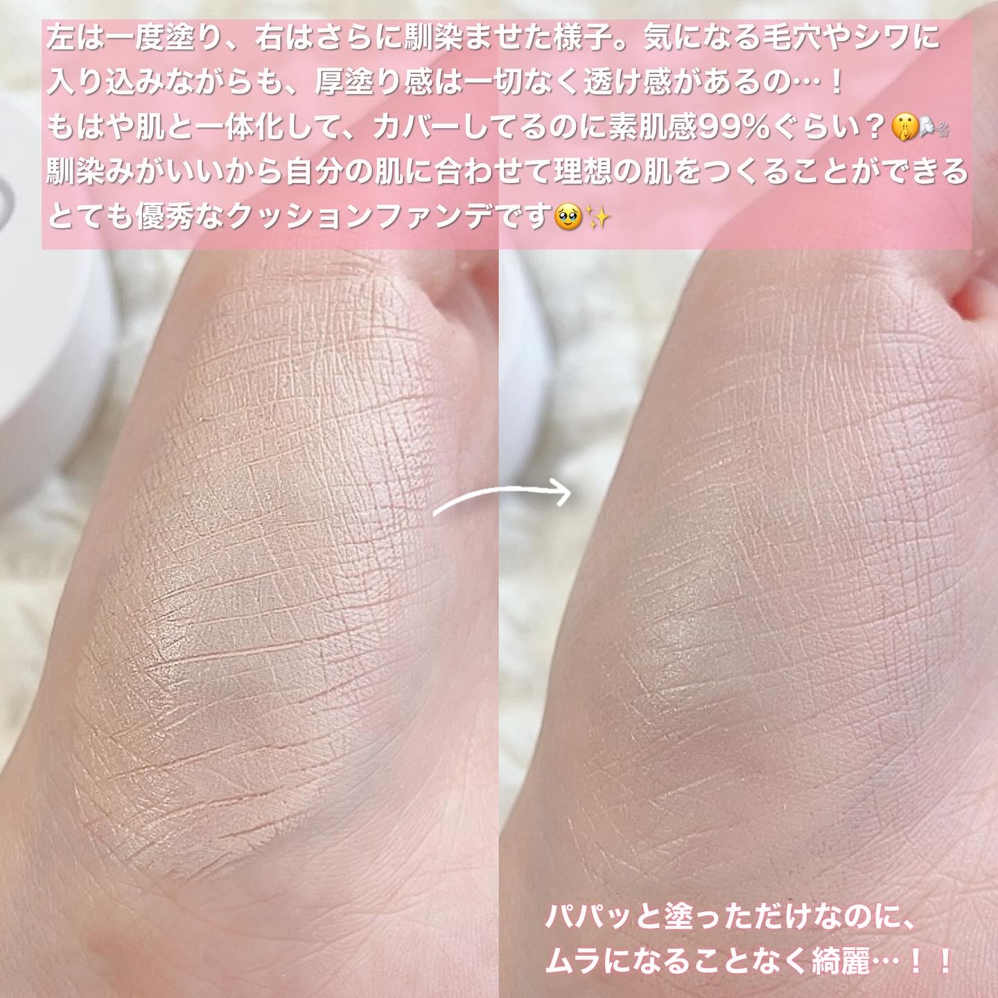 | 厚塗り感は全然なくてとってもナチュラル😳 程よくツヤ感も出てくれてみずみずしい綺麗肌✨ | 詳細を見る | ||