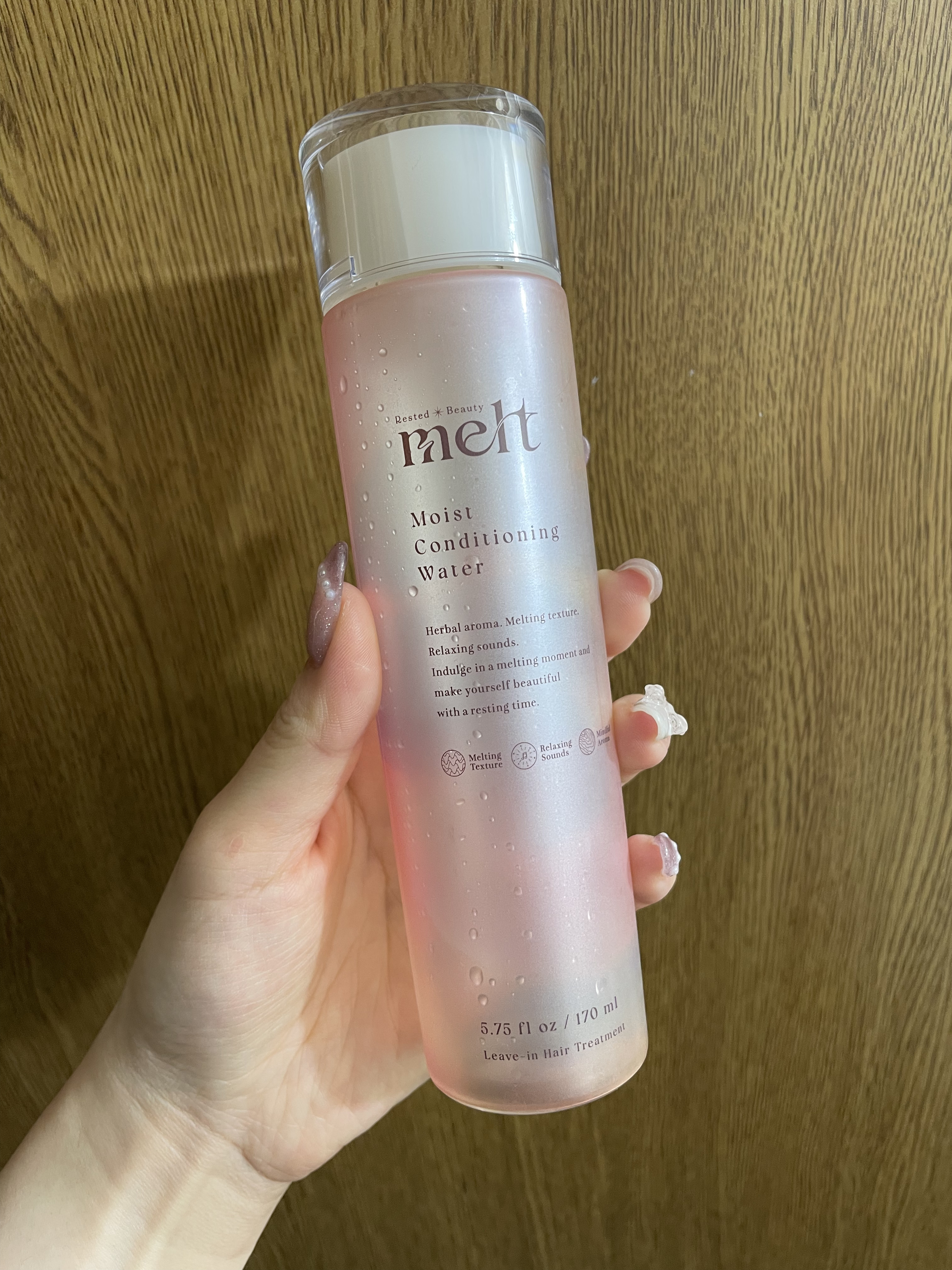 うるおいを閉じ込めてぷるんとみずみずしいツヤ髪に🫧 🌟meltメルト モイストコンディショニングウォーター 【参考価格】¥1,430 適量がパッケージに書いてるから、つけすぎることないしありがたい🥹 ぴよぴよ浮き毛が出るの悩みなんだけど、これ使って乾かすとかなり落ち着くし寝癖もつきにくく感じた❕