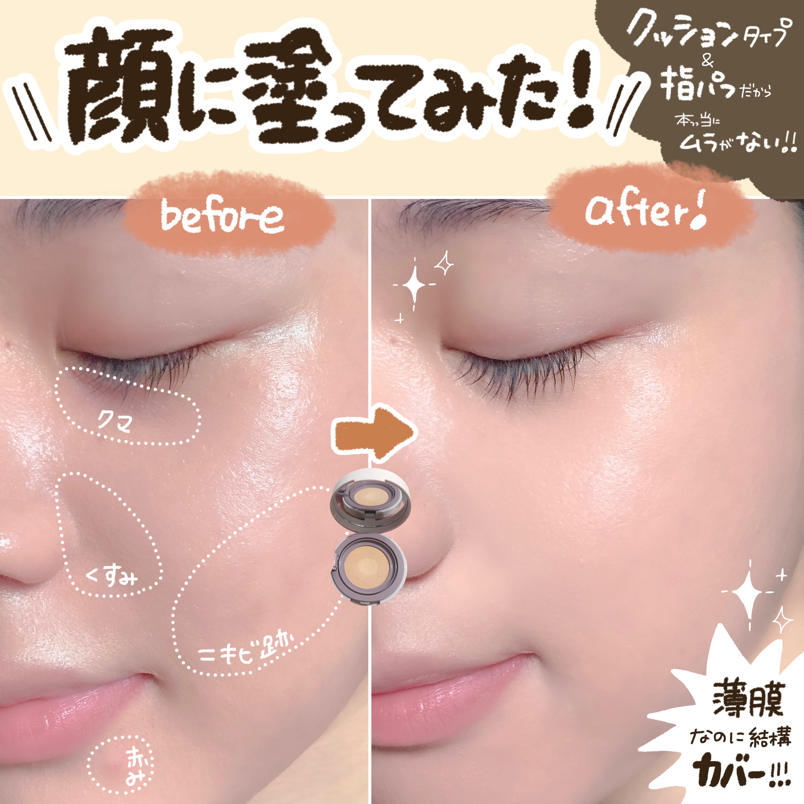 気になる肌悩み、即ミュート🫣 サっと塗るだけでシミ・クマ・くすみをカバー!クッションタイプの時短コンシーラー。 サラッと軽めのテクスチャーなので重ね塗りしてもヨレにくく、厚塗り感が出にくいのでナチュラルな仕上がり✨ 肌悩みに合わせて選べる3色展開で、01 ライトベージュ:明るい肌色、02 ナチュラルベージュ:自然な肌色、03 アプリコットオレンジ:青クマカバー