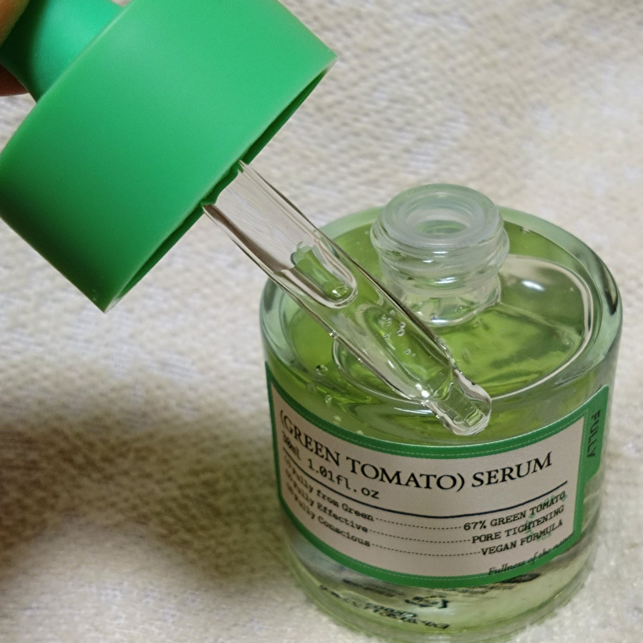 自然原料グリーントマトエキス49%配合で毛穴汚れ、毛穴部位の皮脂、ブラックヘッド、ホワイトヘッド(皮脂)をすっきり落としてくれるよ❣ しっとりすべすべな肌に♡ パックとしても洗顔としても使えるのも嬉しいポイントです😊 グリーントマトエキス67%配合で広がった毛穴を収縮させる、毛穴に特化した美容液💚
