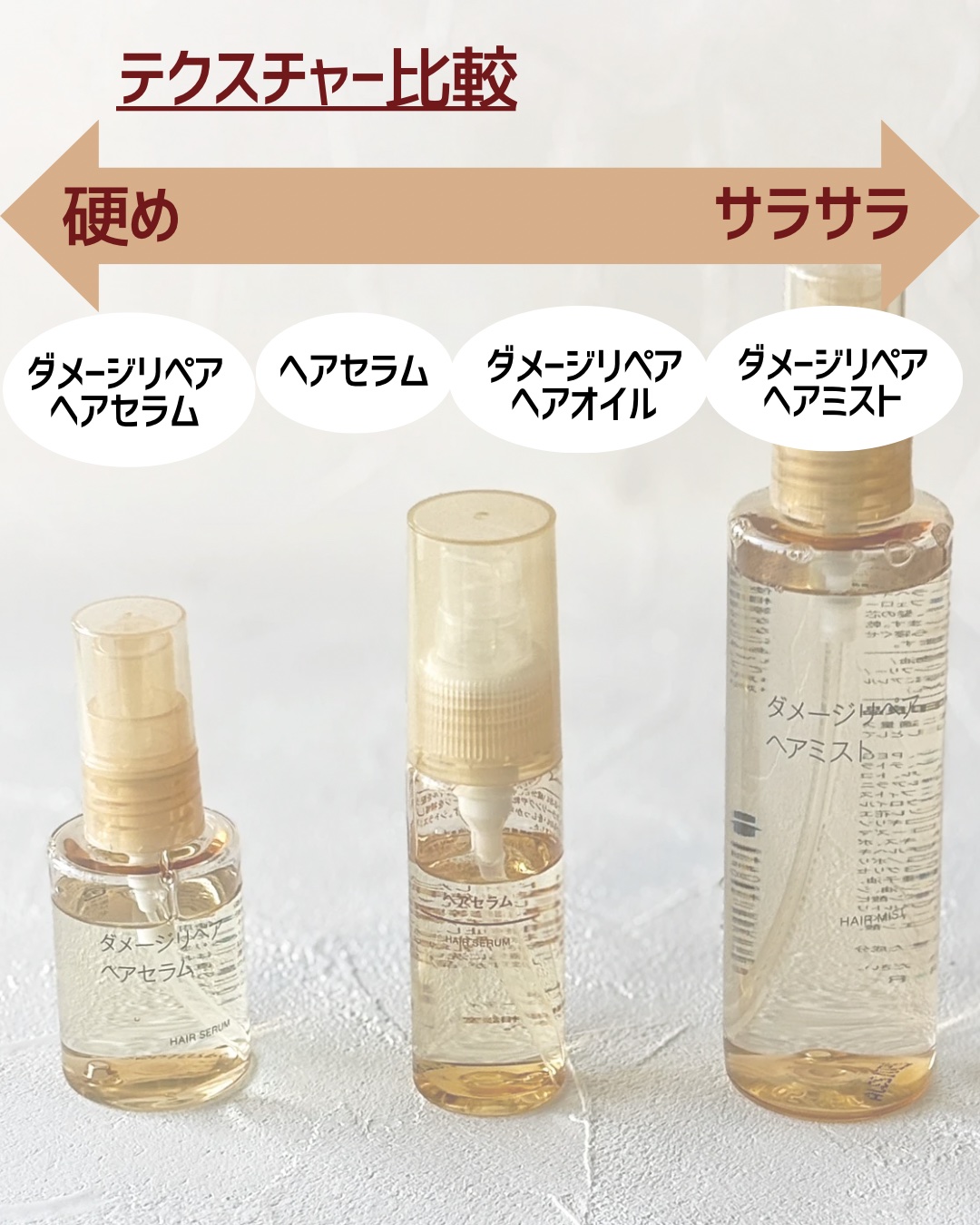 手軽に使えるミストタイプが新登場👏 細かいミストが毛の1本1本に行き届いてすぐにサラサラ&つやつやに! アロマの優しい香りが他社のアウトバスアイテムにはあまりないので、さすが無印良品だな!と感じました🙆♀️ ダメージケアもしっかりできるので、朝も夜も使い続けたい商品だと思いました🥰