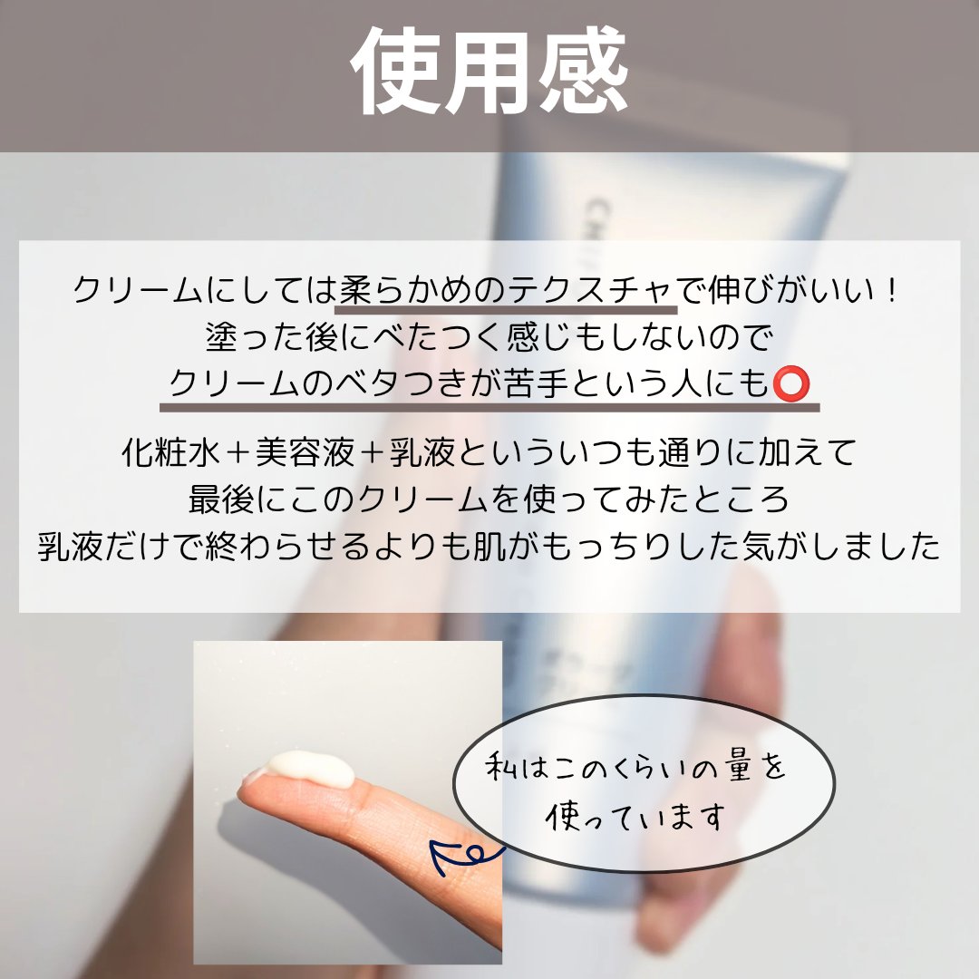 伸びがいいということが実感でき、塗るときの摩擦もあまり気になりません。少量でいいのでコスパもいいなと思いました。 商品自体は無香料なので、香料が含まれてる化粧品はちょっと…という人でも問題なく使えそうです。ハーブ系が好きな私は特に気になりませんでした。