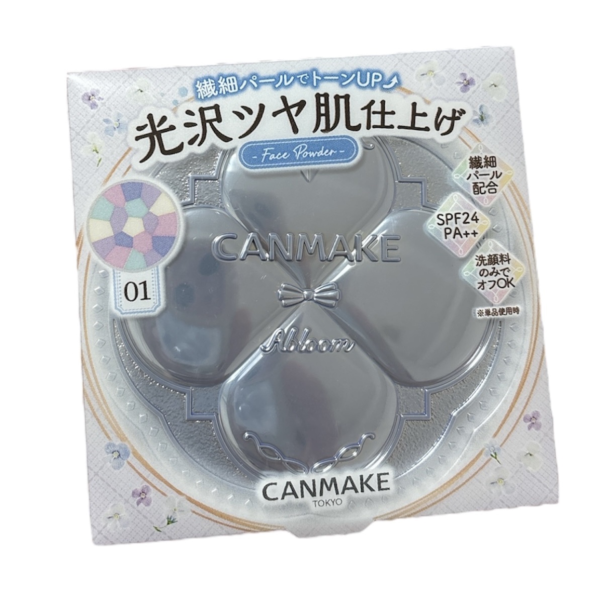 - 【2024年3月上旬にロフトにて、4月上旬にプラザにて先行発売。5月下旬発売です。】 ※2024.7月上旬~ パフが順次リニューアル 尚、これにかかる商品の返品・交換は承っておりません。 磨いたような光沢ツヤ長時間続く ツヤ肌仕上げのフェイスパウダー マシュマロフィニッシュパウダー ~Abloom~から 繊細パール配合のツヤ肌タイプが登場しました。 ひと塗りで透明感のある光沢ツヤ肌に✨ 5色を混ぜて使うことで、肌のくすみや色ムラを補正し、顔色をトーンUP! 濁りのない澄んだ肌が長時間続きます。 水・汗に強く、長時間メイク崩れを防ぎます。