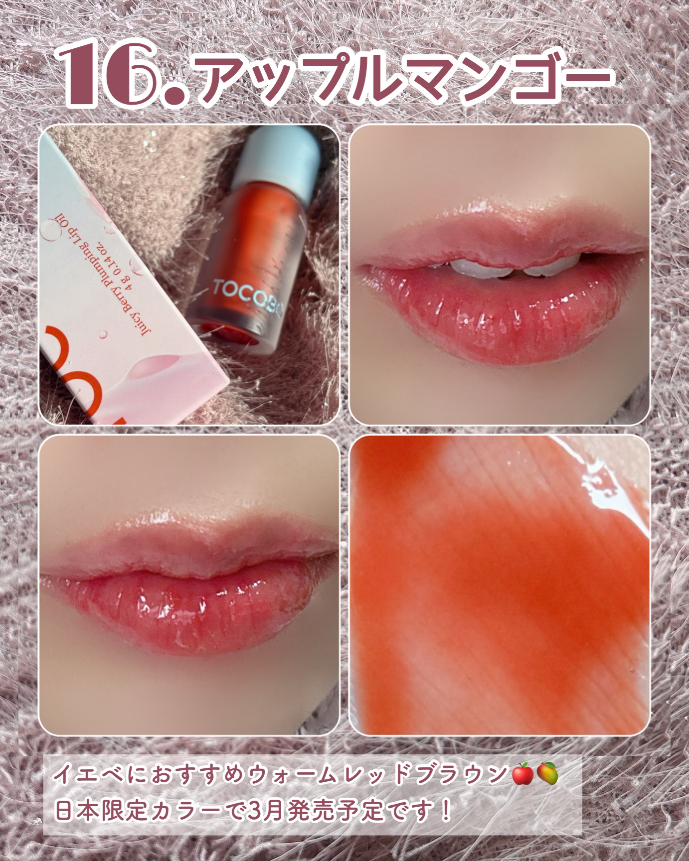 プランピング効果と反射光オイルベースで唇のボリュームを最大化するダブルプランピング効果に透明感のある発色力で、まるでフルーツシロップのようにふっくら輝く唇に演出できるリッププランパー✨ ユニークで爽やかにはじける好奇心を呼び起こすしモンイエロー イエベ・ブルベ両方とも好まれる桃カラー