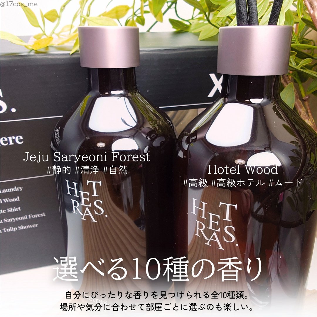 500mlの大容量のディフューザーでしかも2本入り(販売は同じ香りです) 高級ホテルロビーに居る様な大人な落ち着いた香りです 済州にあるサリョニ林道という実在の場所をイメージした香りだそう