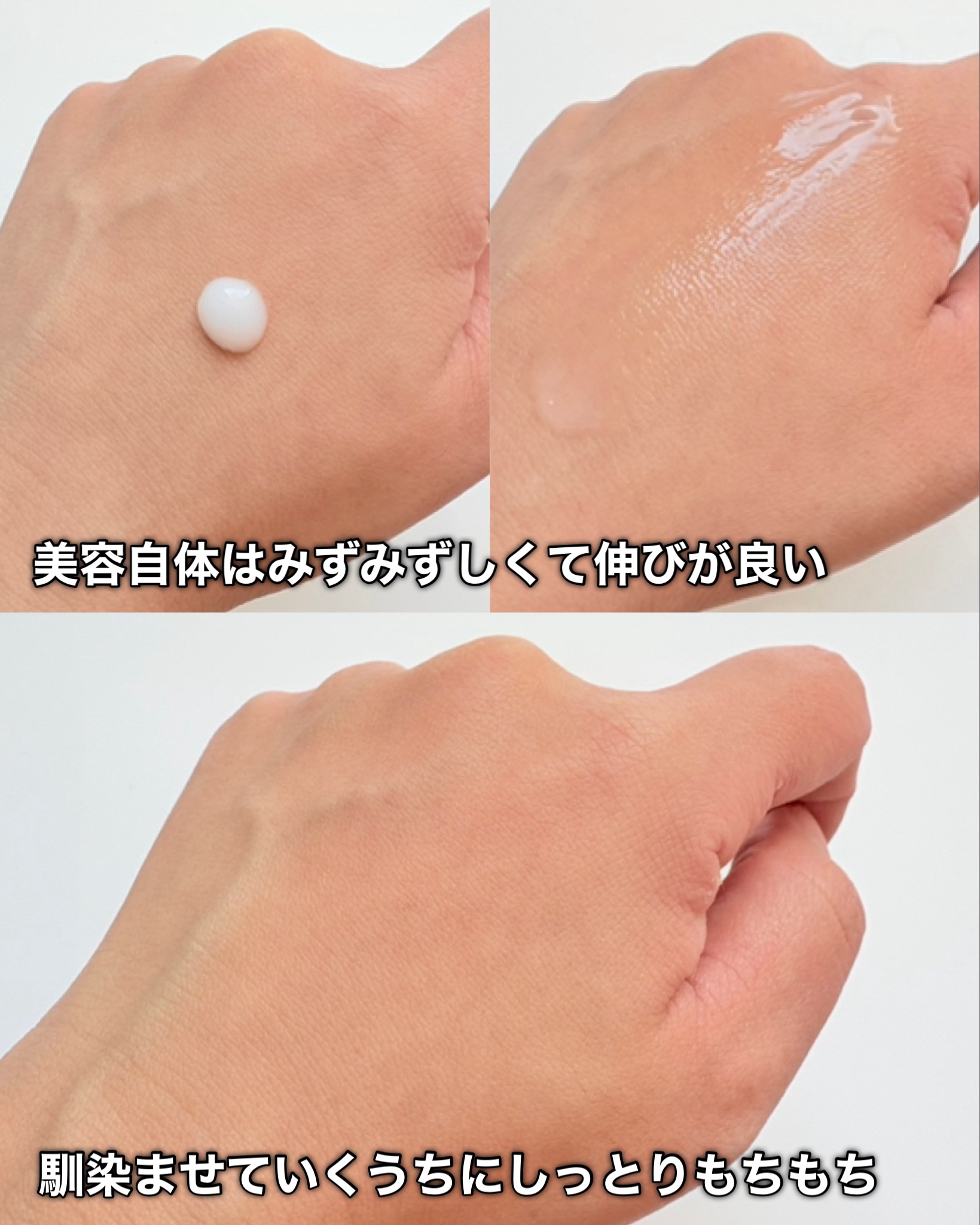 | テクスチャーは乳液のような水分たっぷり✨ 伸びが良くすーっと馴染み ベタつきがなくしっとりするので 軽い使い心地で使いやすいです🙌 | 詳細を見る | |
