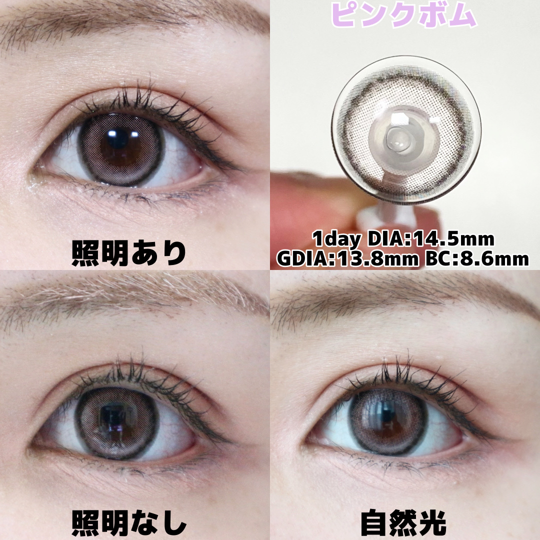トゥインクルブラウン 3つのハイライトでもっと輝く きらきらデイリーブラウン ピンクボム ふわふわ太フチでもっとラブリー あまあまトキメキピンク どちらも着色直径大きめなので、しっかりカラコン感を感じられる仕上がりに👀✨