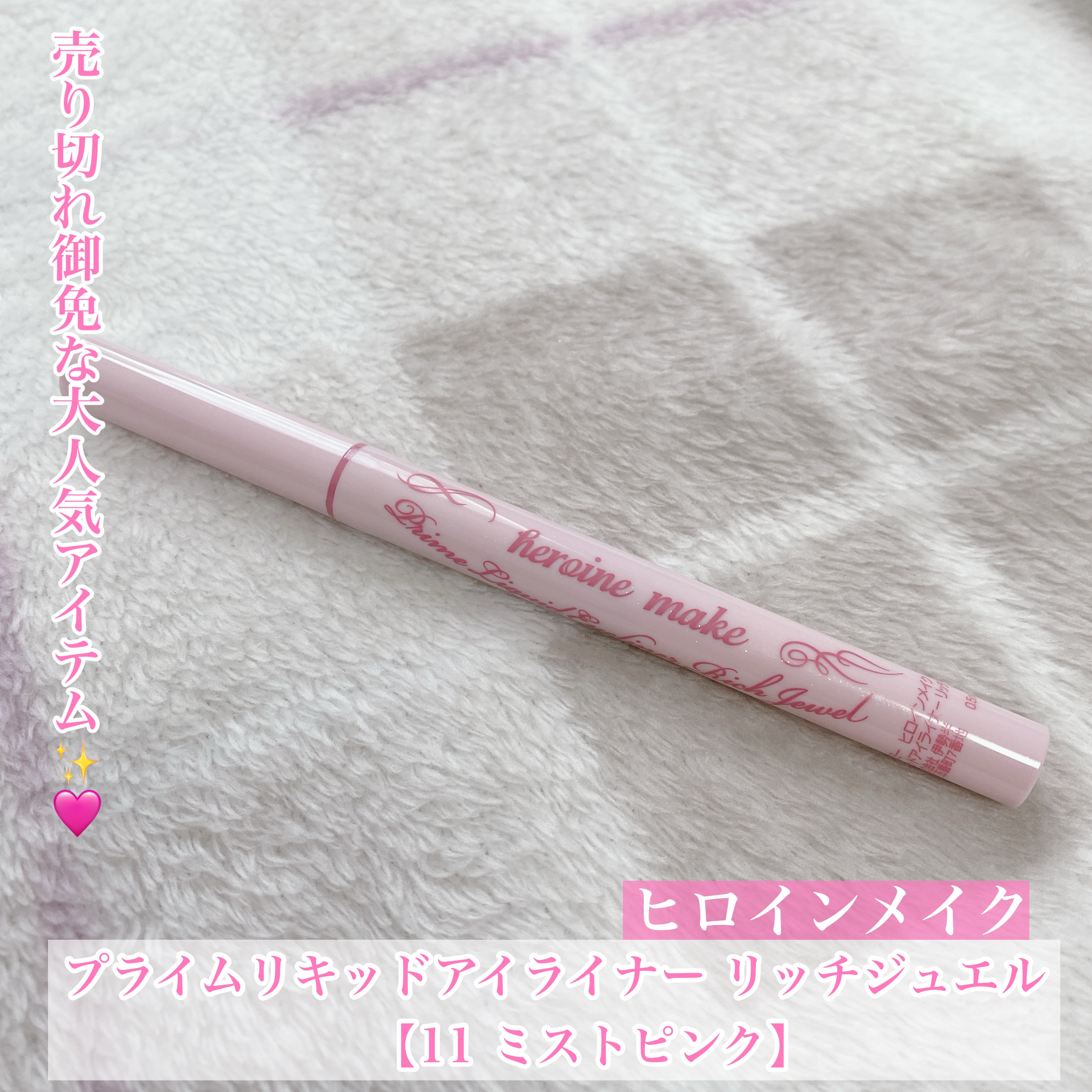 超!輝きラメライナー🪄 ヒロインメイク ⟡プライムリキッドアイライナー リッチジュエル この2色と、09フローズンピンクの計3色並んだ売り場でいつも売り切れてるのが11だった! 今日出会えたのでお迎え🛒 09フローズンピンクはひんやりピンクでめっちゃ可愛いけど我慢した😵💫