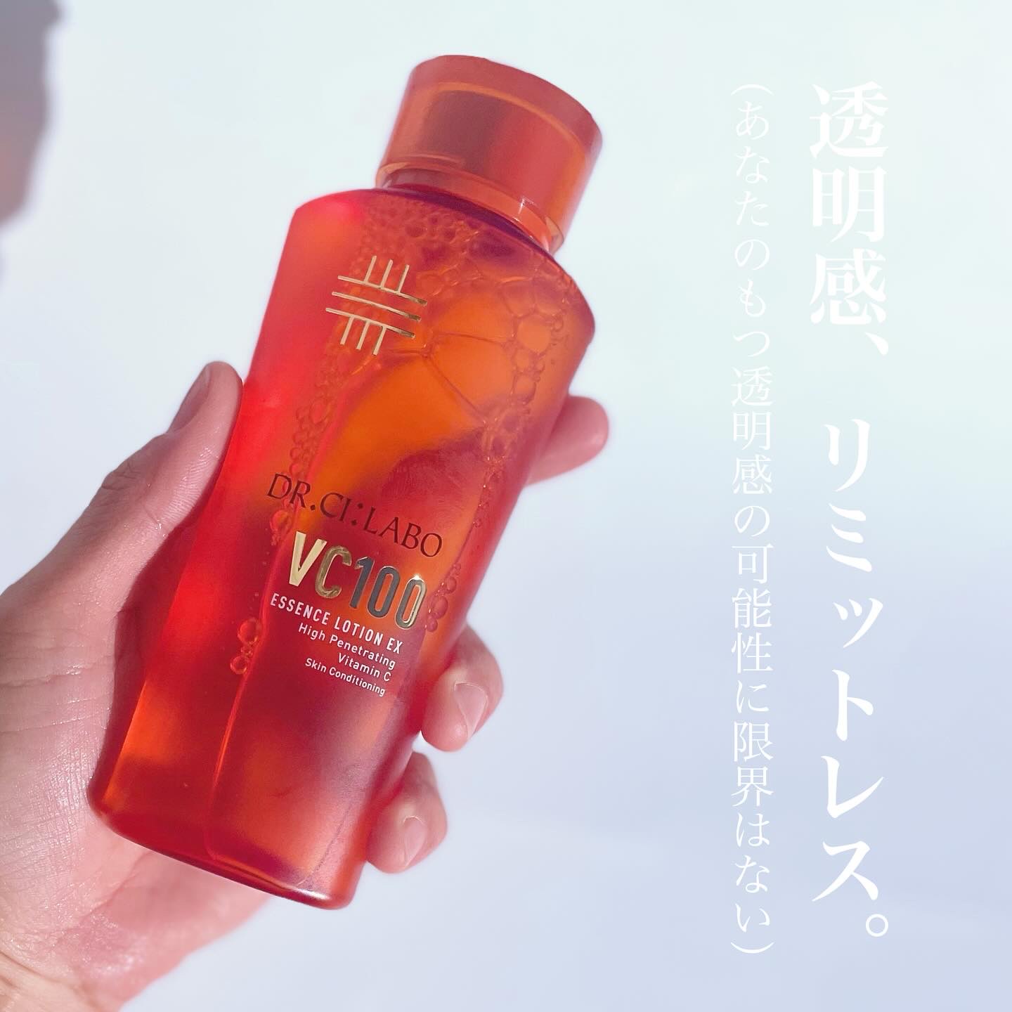 - 透明感、リミットレス。 100兆個の高浸透ビタミンCで、奥から、目覚める。 誕生から、長年に渡りこだわり続けている高浸透ビタミンC。 いかに効果的に肌へ届けるか「APPS」の高みへ挑戦してきました。 今回新たに、高浸透ビタミンCをカプセル化する独自技術「マイクロ安定化技術」を採用。 これにより、高浸透かつさらなる高濃度でお肌へ届けることに成功。 100兆個のマイクロ高浸透ビタミンCが肌のうるおい、弾力、つや、キメにアプローチ。 あなただけの、ハッとするような透明感を。 日々のスキンケアで効果を体験し、もっとしなやかで、もっと輝く毎日へ。 Point1. 肌に触れた瞬間、目覚める「マイクロ高浸透ビタミンC 」 100兆個のマイクロ高浸透ビタミンCが、肌へ。 ビタミンCが肌に触れて目覚める力に着目した独自技術「マイクロ安定化技術」を採用。 高浸透ビタミンCをカプセル化して配合することで、より効率的に高濃度で安定して肌へ届けます。 Point2. とろっと濃密、なのにサッと浸透。 豊富な美容保湿・整肌成分(ナイアシンアミド・ヒアルロン酸・コラーゲン)配合。 ======================================= 透明感:うるおいによる肌印象の事 奥から、目覚める。:使用者の気持ちが奥底から高まること 肌、内側、浸透、肌の奥:角層まで APPS:パルミチン酸アスコルビルリン酸3Na(整肌成分) 高浸透ビタミンC:パルミチン酸アスコルビルリン酸3Na(整肌成分) 高濃度:「シーラボ VエッセンスローションEX R」比 100兆個:1回の使用量あたり(概算値) マイクロ高浸透ビタミンC:パルミチン酸アスコルビルリン酸3Na(整肌成分) ビタミンC:パルミチン酸アスコルビルリン酸3Na、アスコルビルリン酸Na(整肌成分) ナイアシンアミド:整肌成分 ヒアルロン酸:加水分解ヒアルロン酸、ヒアルロン酸Na(整肌・保湿成分) コラーゲン:加水分解コラーゲン(保湿成分)
