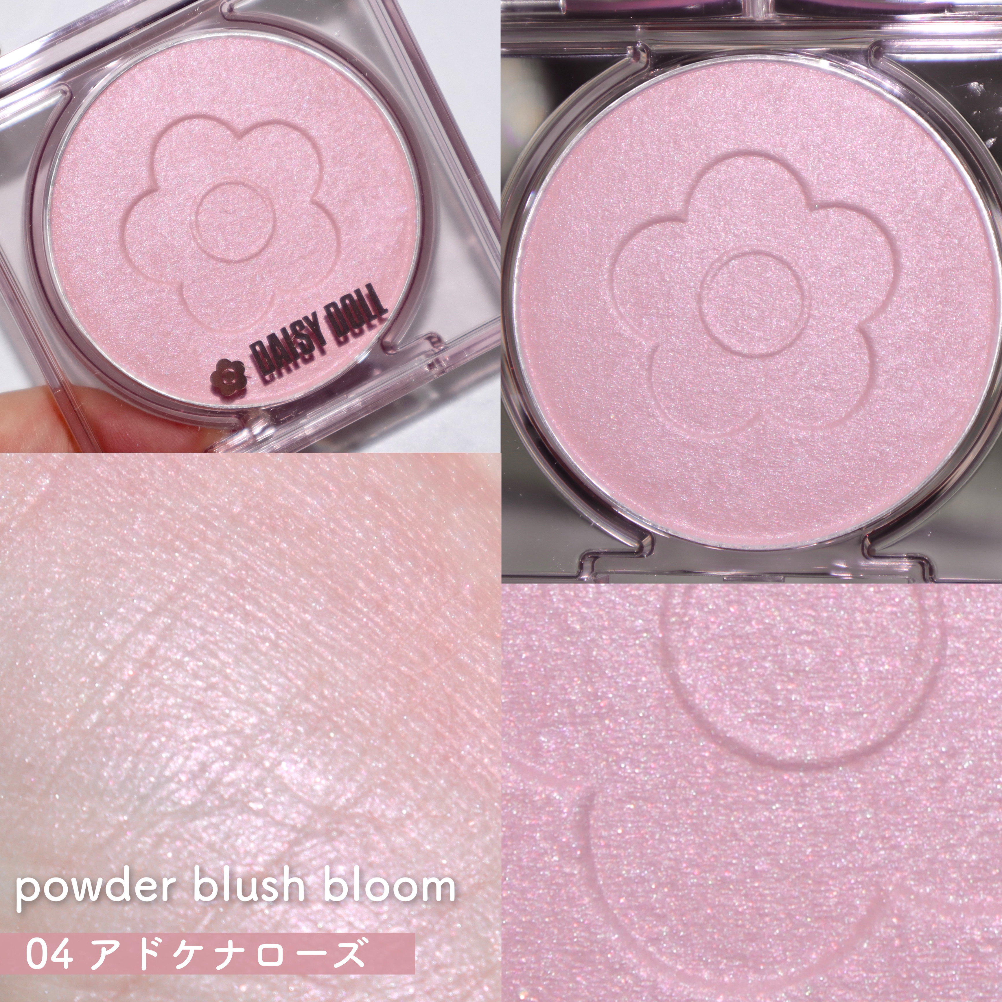 デイジードール可愛いチーク新色✨ 04は明るい白みのあるローズピンク 頬に丸くのせると可愛い💓 キュートな印象に👌 05は色味はパウダーブラッシュPK-02と同じ。ツヤっとした透明感がでるライラックピンクが可愛い💓 パウダーブラッシュブルームはちょうどいいツヤ感と血色感が本当に可愛い👌 普段使いしやすい可愛いチークを探しているかたにぴったりです☺️