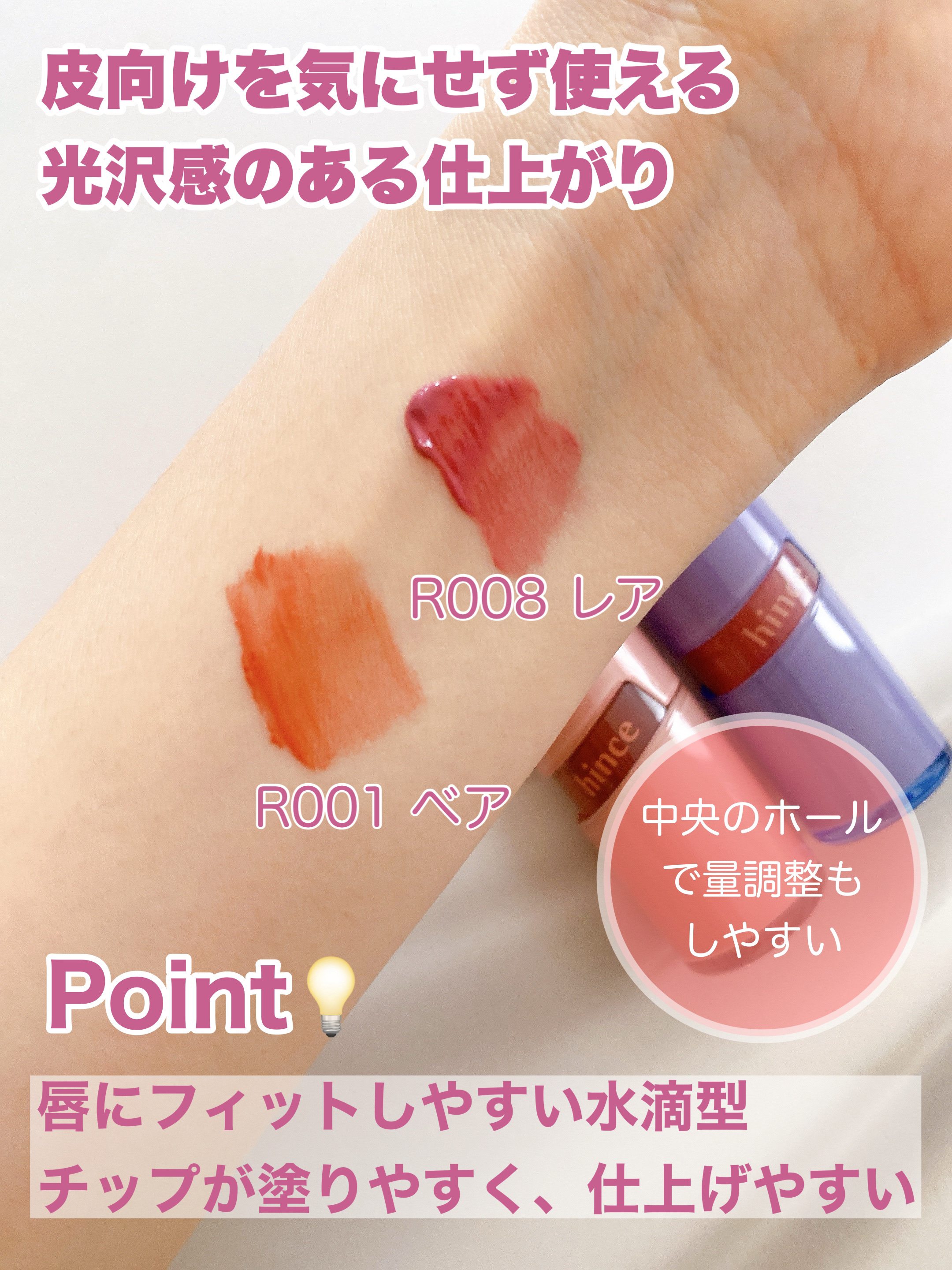 - ・塗ってンパンパせず10秒待つと、自然な光沢感が満ちてくる新感覚・レア膜ティント ・すっぴんでも調和する自然な光沢感 ・イエベ・ブルべ問わず本来の唇の色と調和する半透明カラー ・三重ヒアルロン酸配合で肌に潤いを与え乾燥を防いで長時間鮮やかなカラーをキープ
