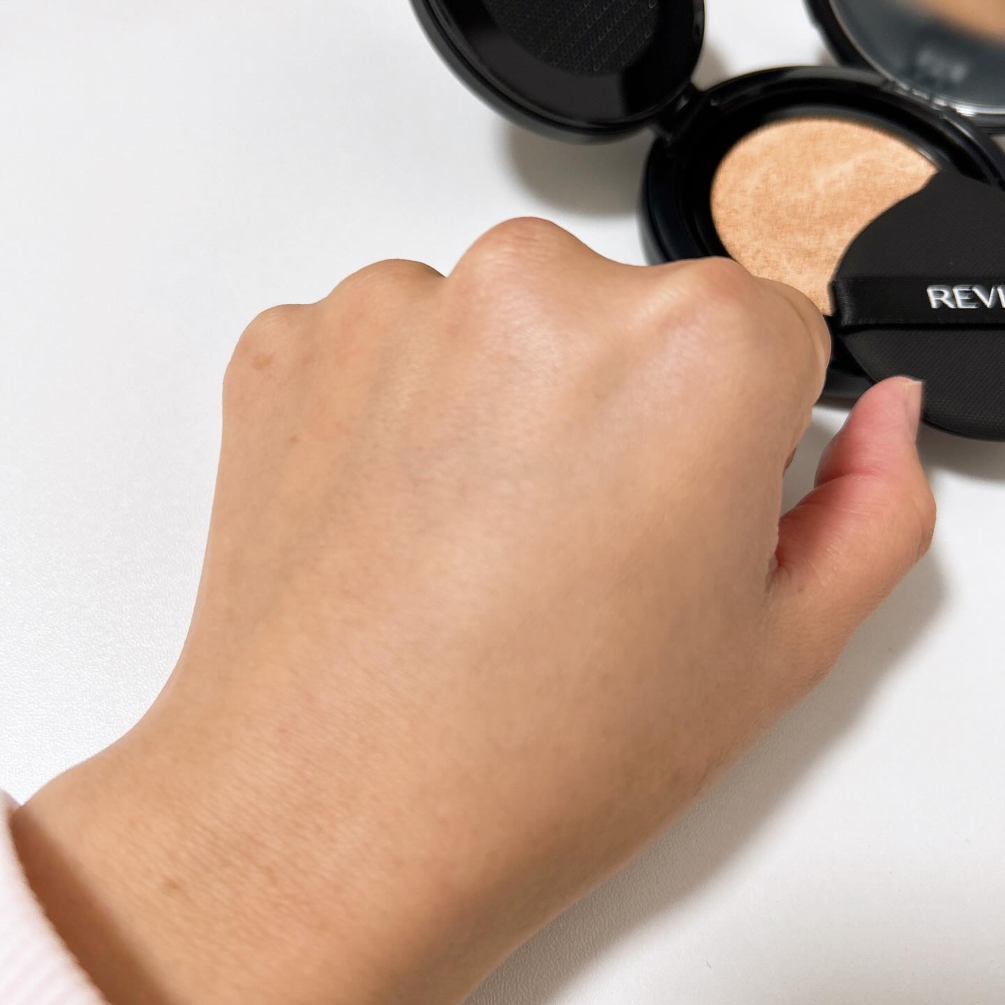 スキンケア成分を70%も使っているので、みずみずしくしっとりとしています。 スキンブリージングテクスチャーという、Healus独自のテクスチャーなのだそう! パフでたたきこむと肌に密着して、ツヤっとするけどベタつかないので気に入りました😉💕 カラーは21号・23号の2色展開。 21号の方が少し明るめですが、ニュートラルトーンになっているので、肌トーンにとらわれず、全ての肌トーンに使用できるみたいです。