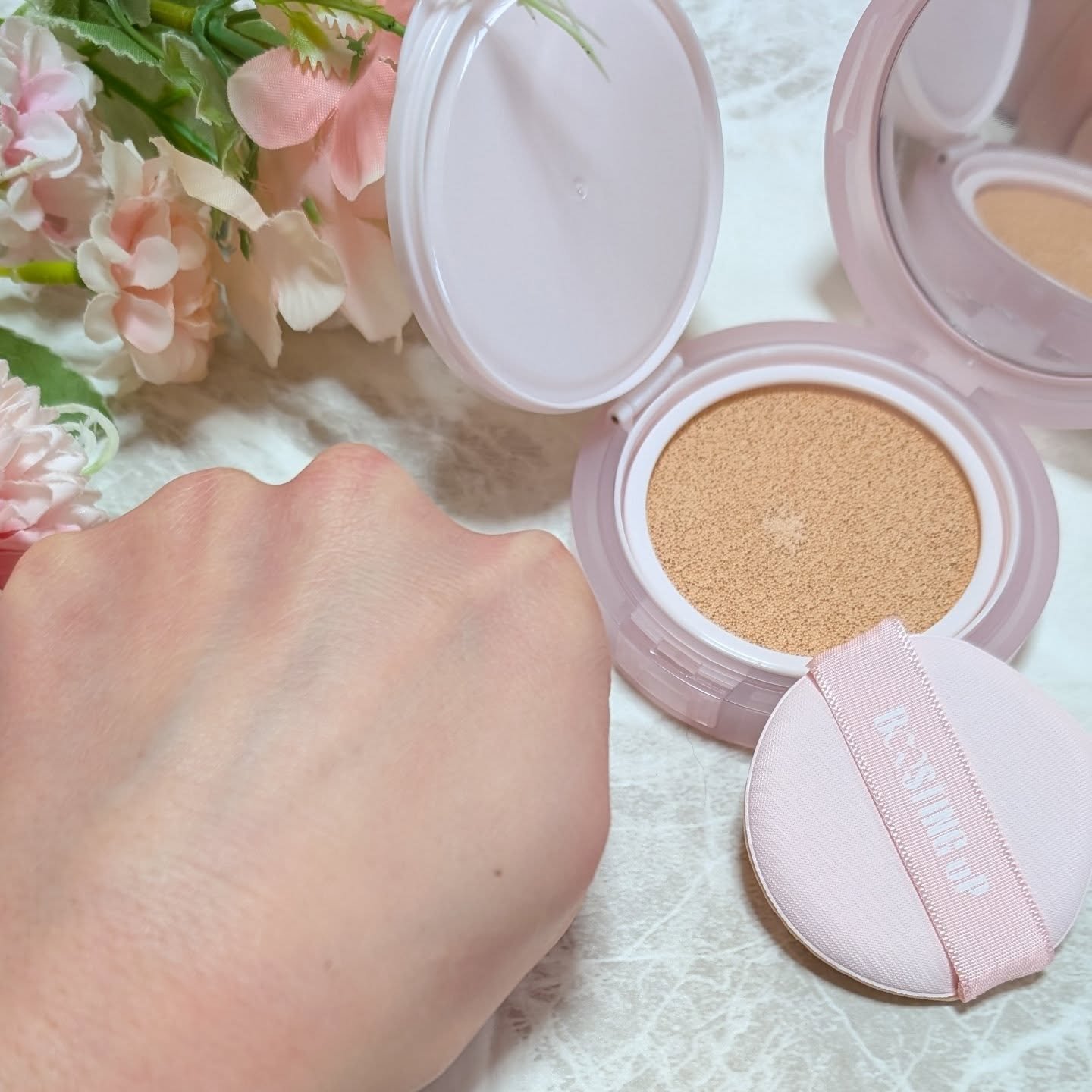 クッション部分はしっかりとファンデーションが染み込んでいて、触るとジュワッとするような感覚です。 ツヤ感のある綺麗な仕上がりで、カバー力もあるように思いますが厚塗り感がないのが嬉しいなと思います✨ 薄付きに仕上げられるのですが重ねても重たくならず、仕上がりがとにかく綺麗で肌への密着も良いように感じました。 付けていて肌への圧迫感も感じませんでしたし、使い心地も良くとても気に入りました😊