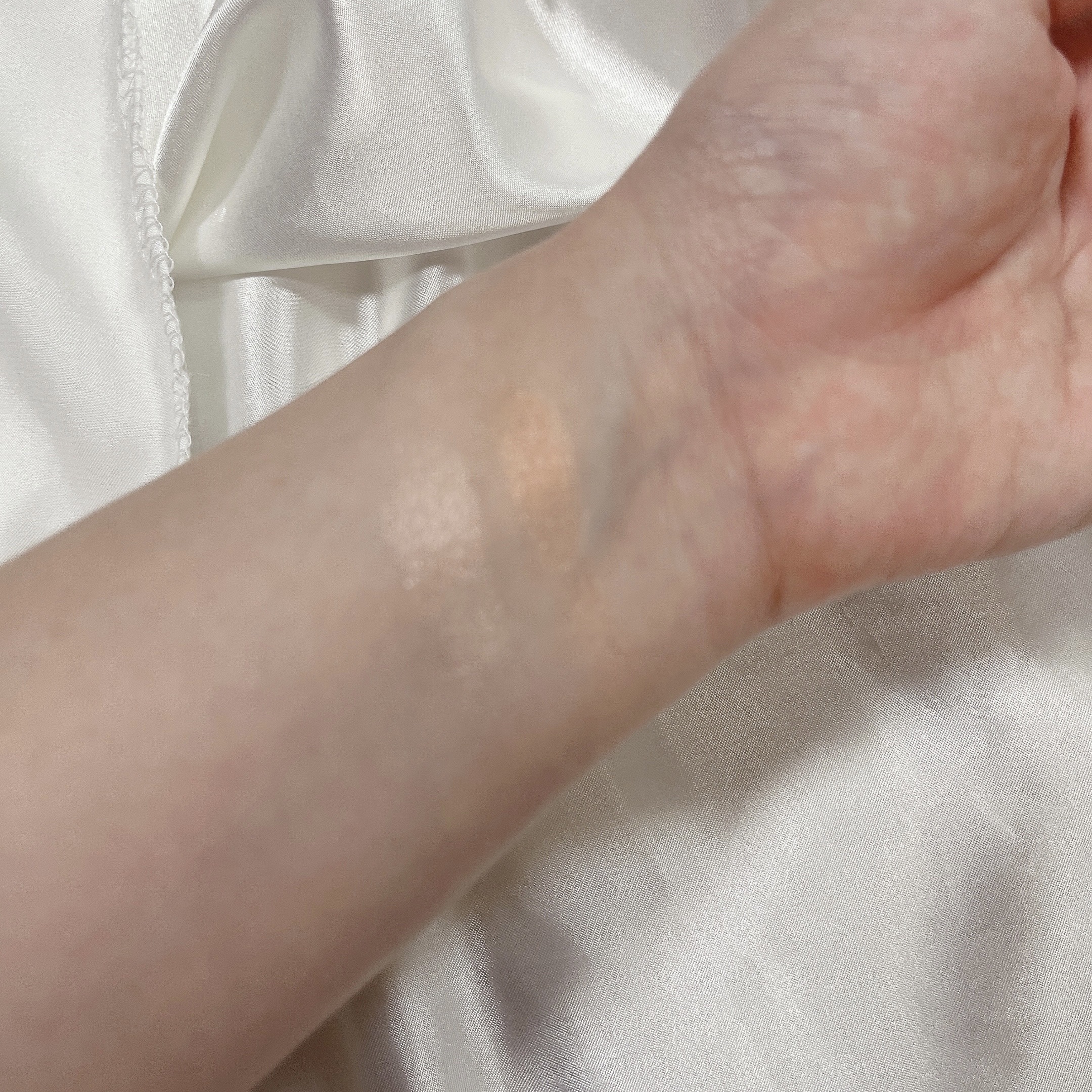 エテュセのフェイスカラー、待ってましたー!! もうね、ほんとうに使用感がよかった✨ うるおいが長時間続くスキンケア仕立てでテクスチャーだけでなく肌もしっとりが続く🫧 01 なじみつやハイライト 繊細な輝きでうるおったツヤ肌を演出 白浮しないピンクベージュ♡