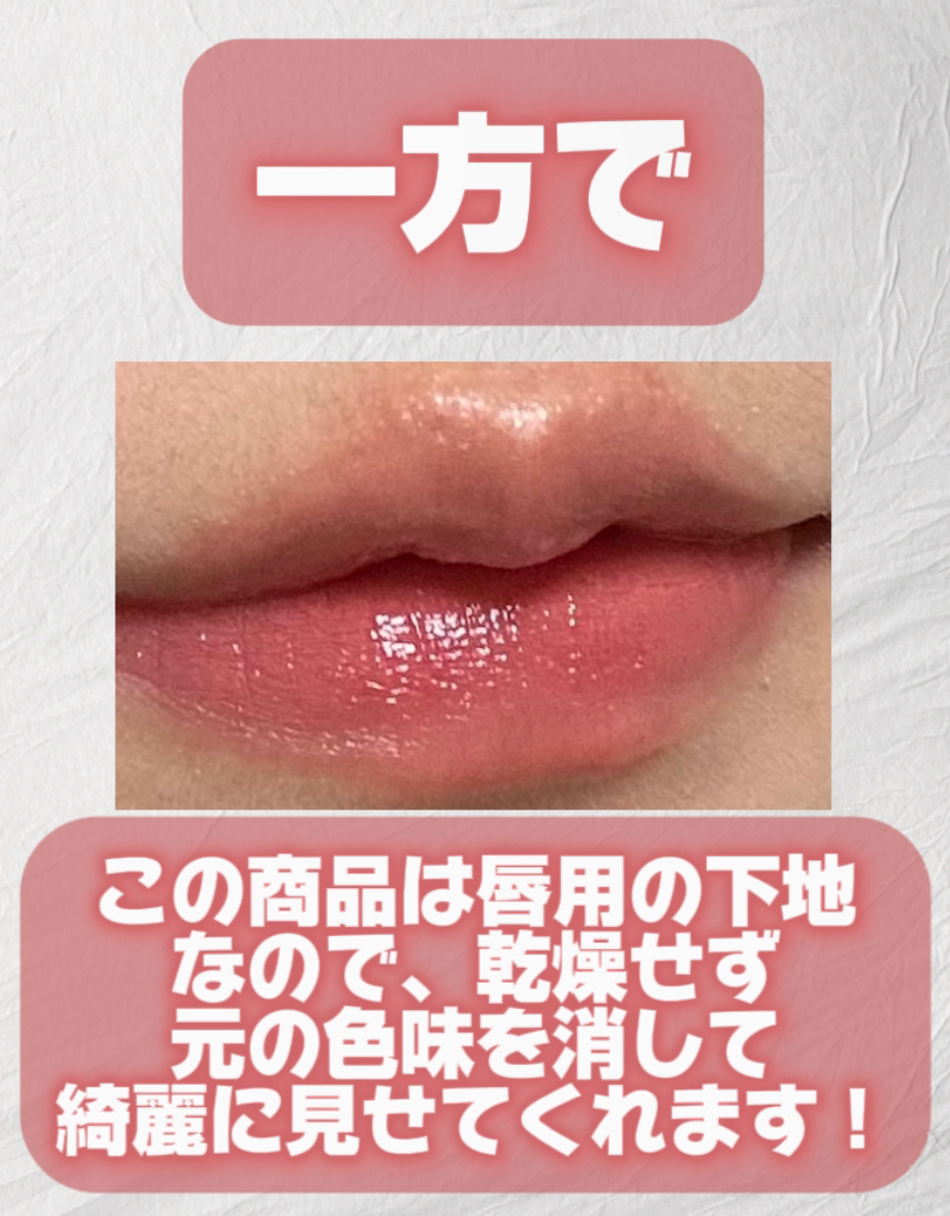 - 元のくちびるの色をミュートする 新発想のくちびる用下地 ●濃い色の唇の存在感を抑えて、生まれつきかのような淡い色のヌードリップに。 ●その後に重ねる口紅と混ざりづらく、ぴたっと密着。 ●チップで唇に伸ばした後は、トントンと指でなじませるだけで簡単に唇の色を補正。 ●唇の縦ジワをかくしてふっくらとした唇に。 ●5 種のうるおい美容成分で唇の乾燥を防ぎます。 ヒアルロン酸 Na・ホホバ種子油・ローヤルゼリーエキス・ビタミン C 誘導体(テトラへキシルデカン酸アスコルビル)・ビタミン E(トコフェロール) ●無香料 <このような方にオススメ> ■素のくちびる色が赤っぽい ■淡色リップが似合わない ■どのリップも同じ色になる <ご使用法> ■リップメイクの前に。チップに適量を取り、唇に塗布してください。 ■チップで唇全体に広げた後、指でトントンと軽くたたきこむようになじませるとより自然に仕上がります。